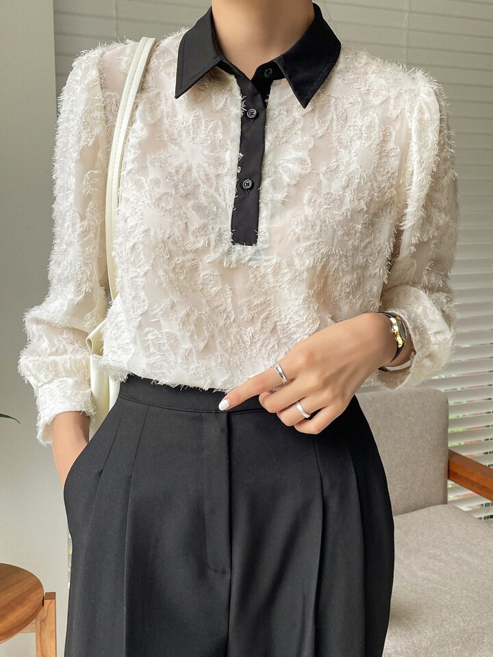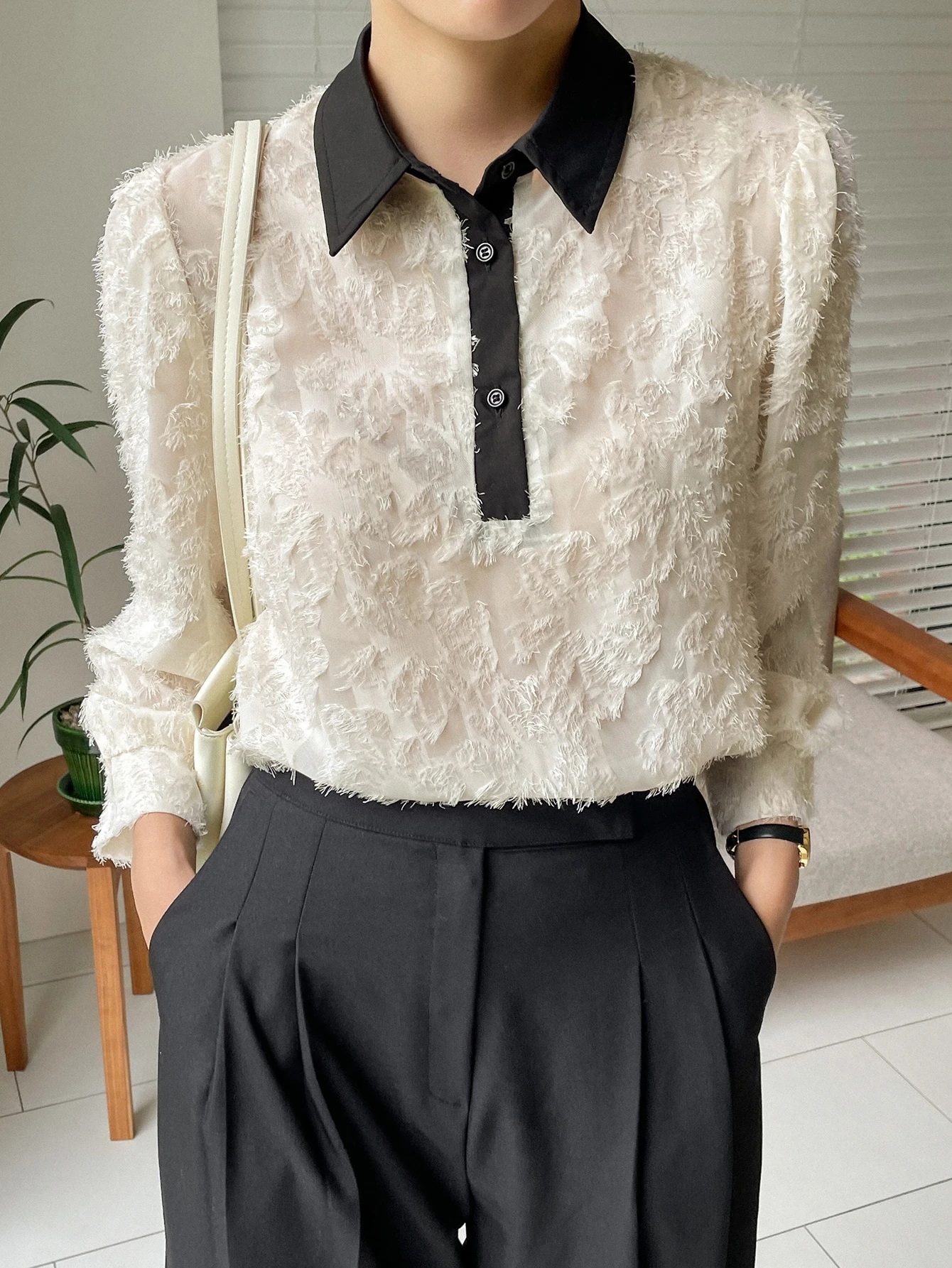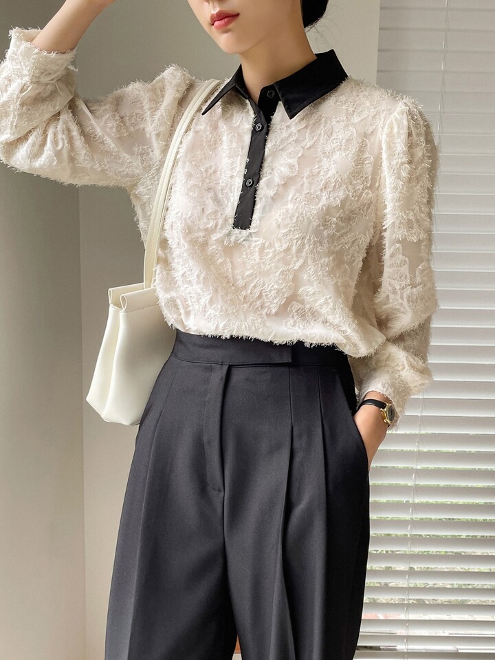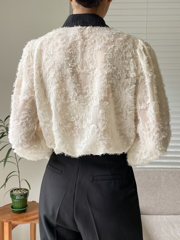Camicia colletto a contrasto con manica a sbuffo morbido