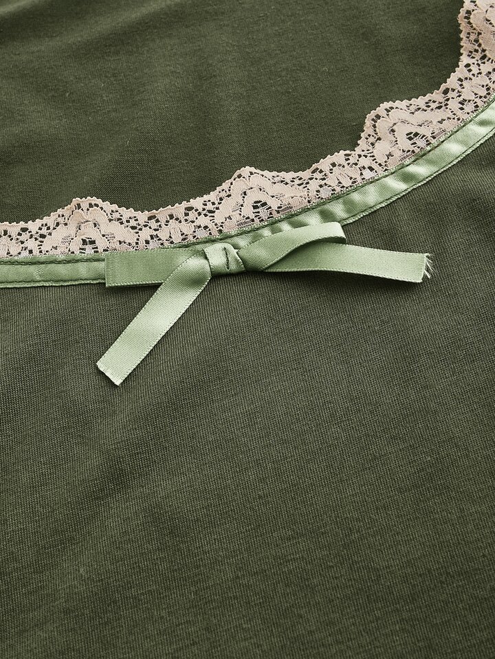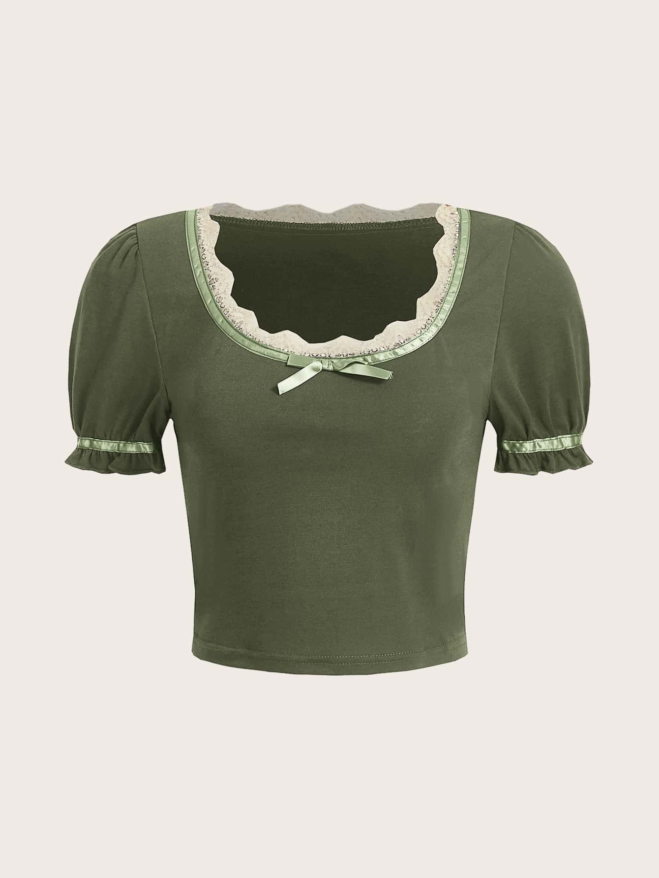 Maglietta pizzo a contrasto fiocco