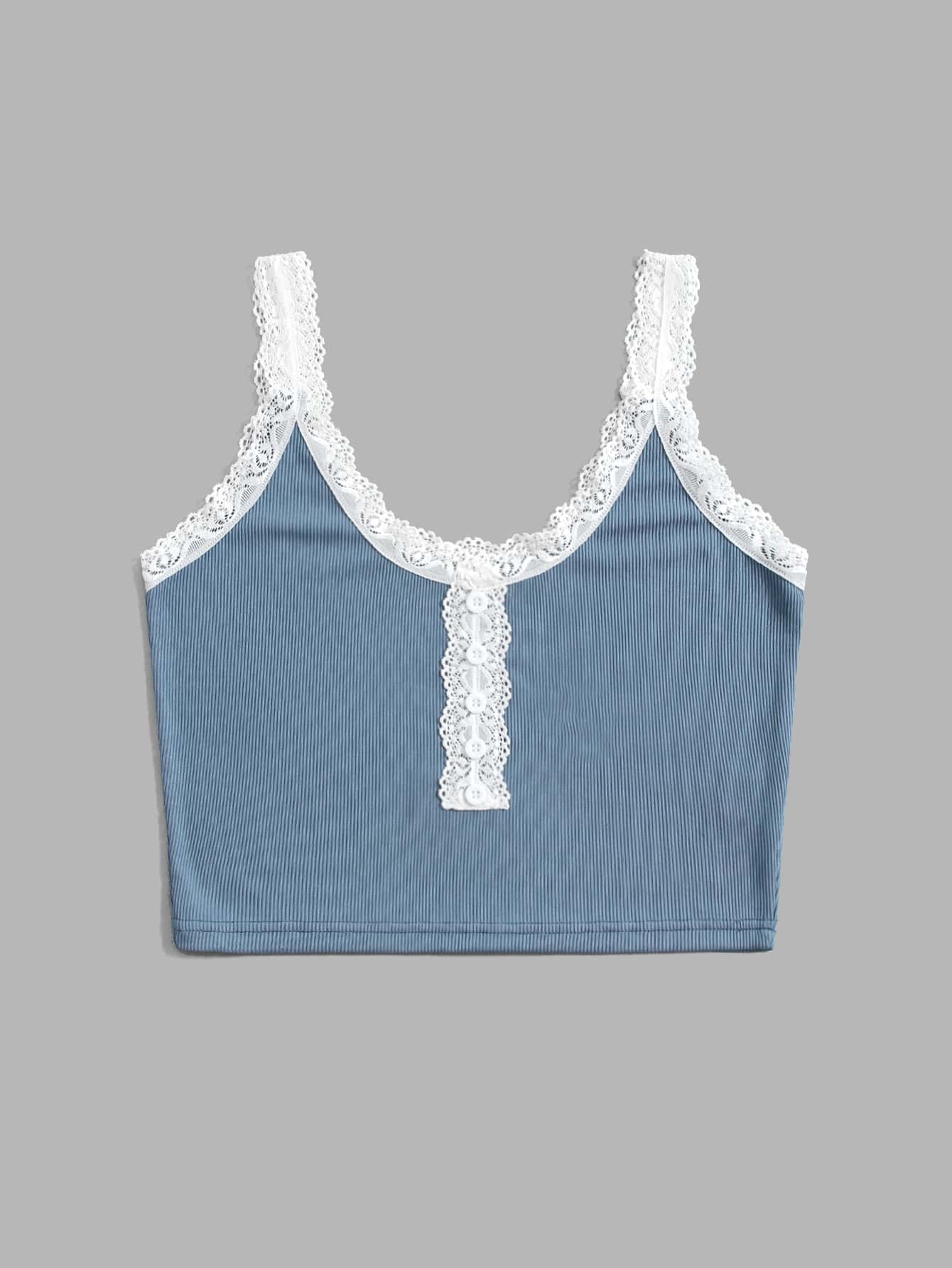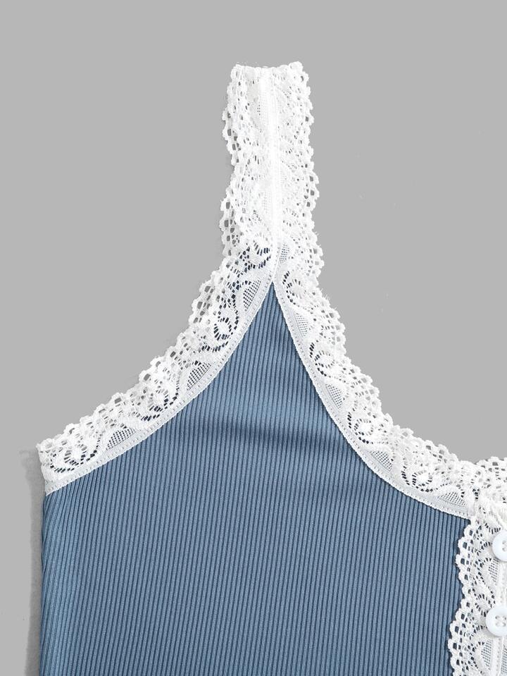 Top con bretelle sottile pizzo a contrasto dettaglio bottone
