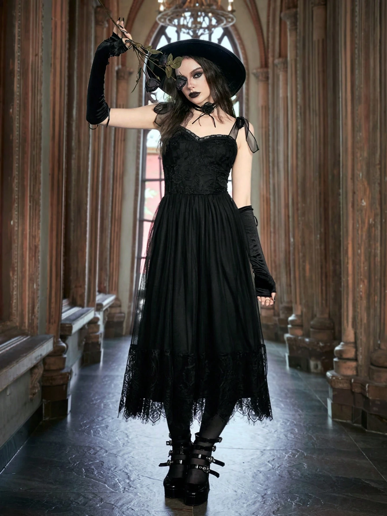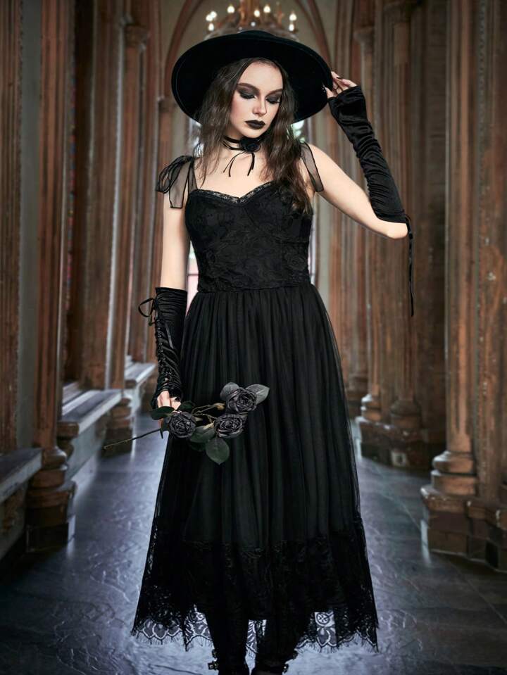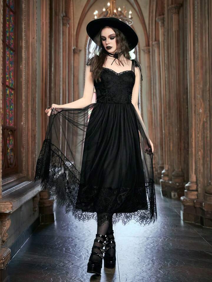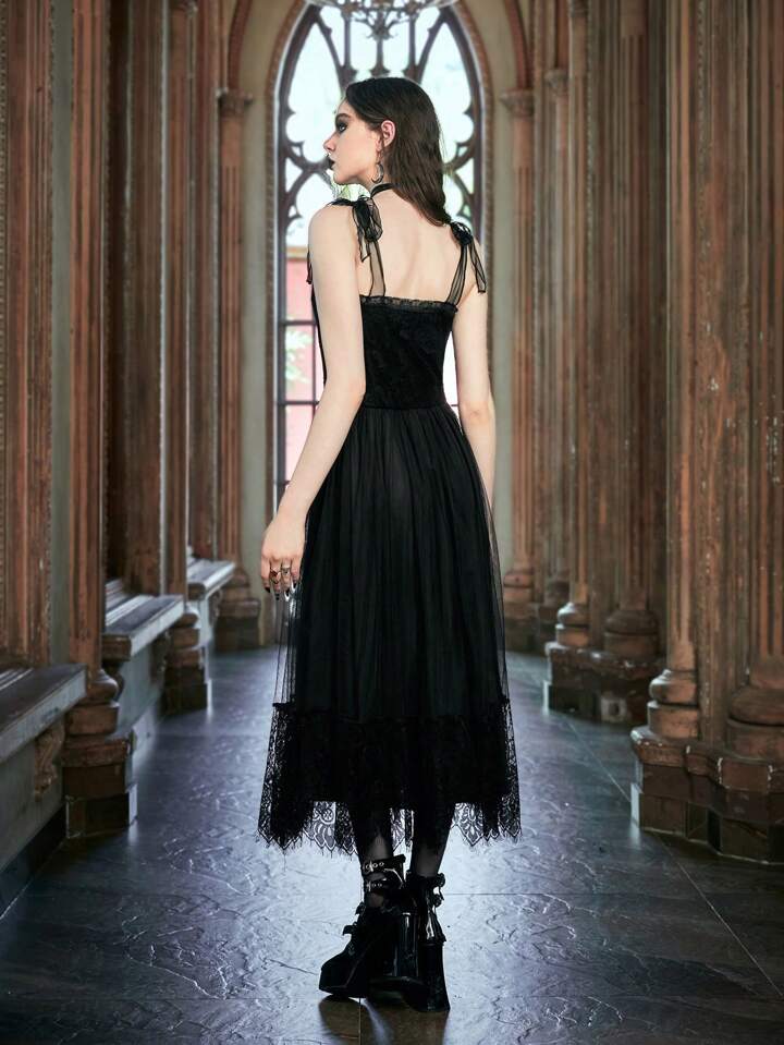 Goth Vestito Canotta Con Pizzo A Contrasto
