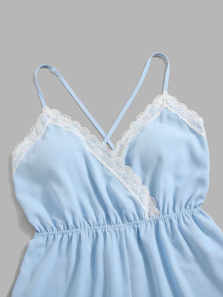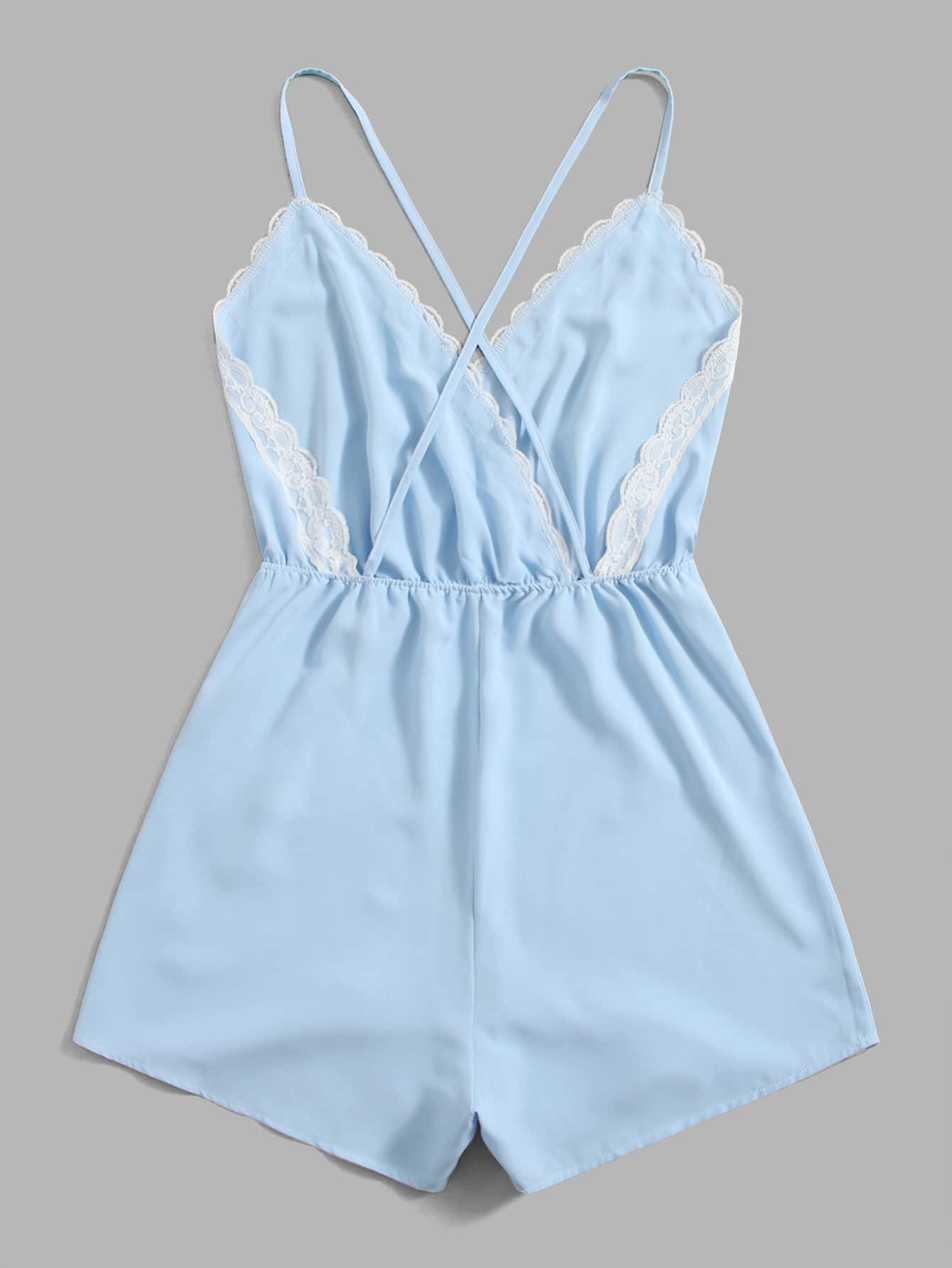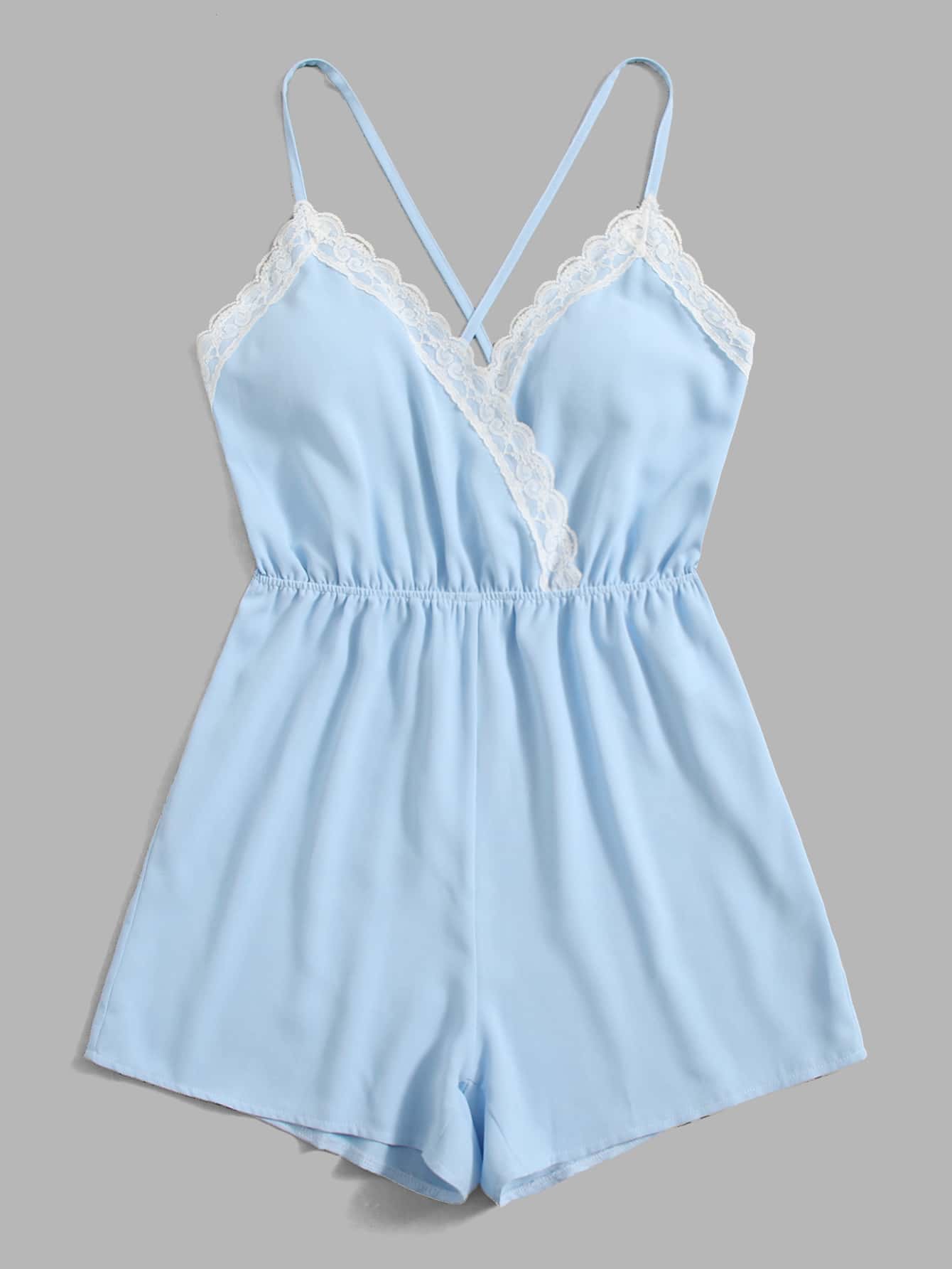 Tuta con bretelle sottile pizzo a contrasto