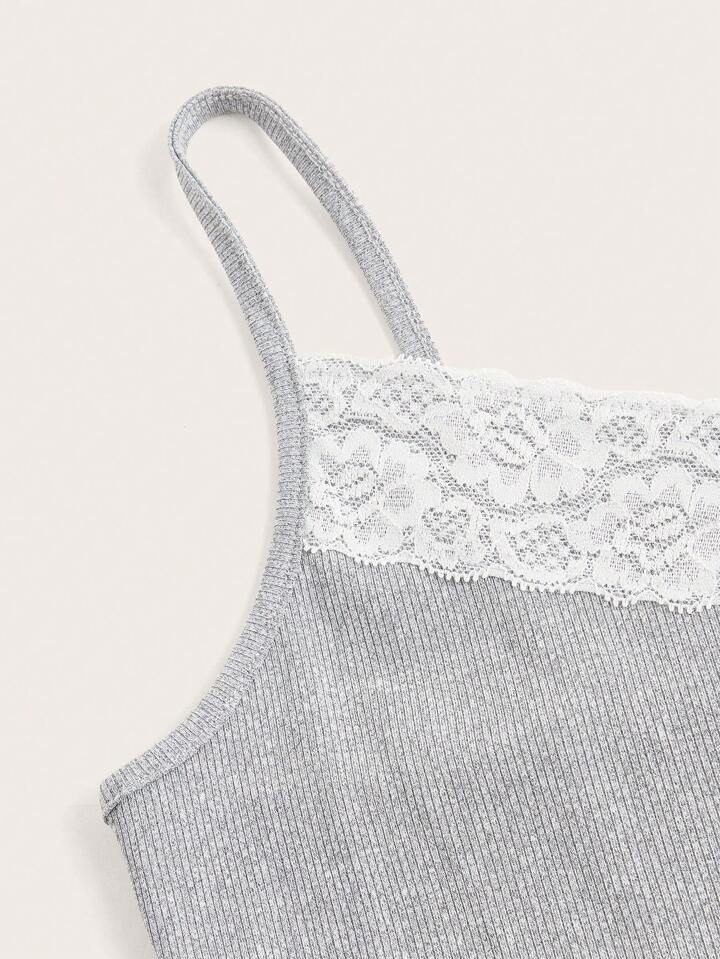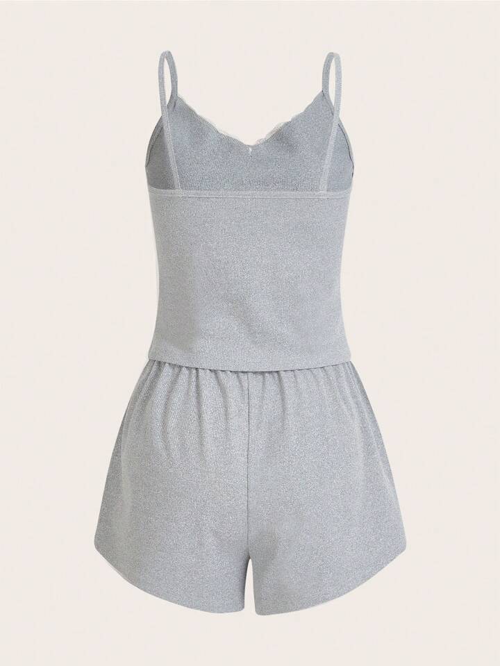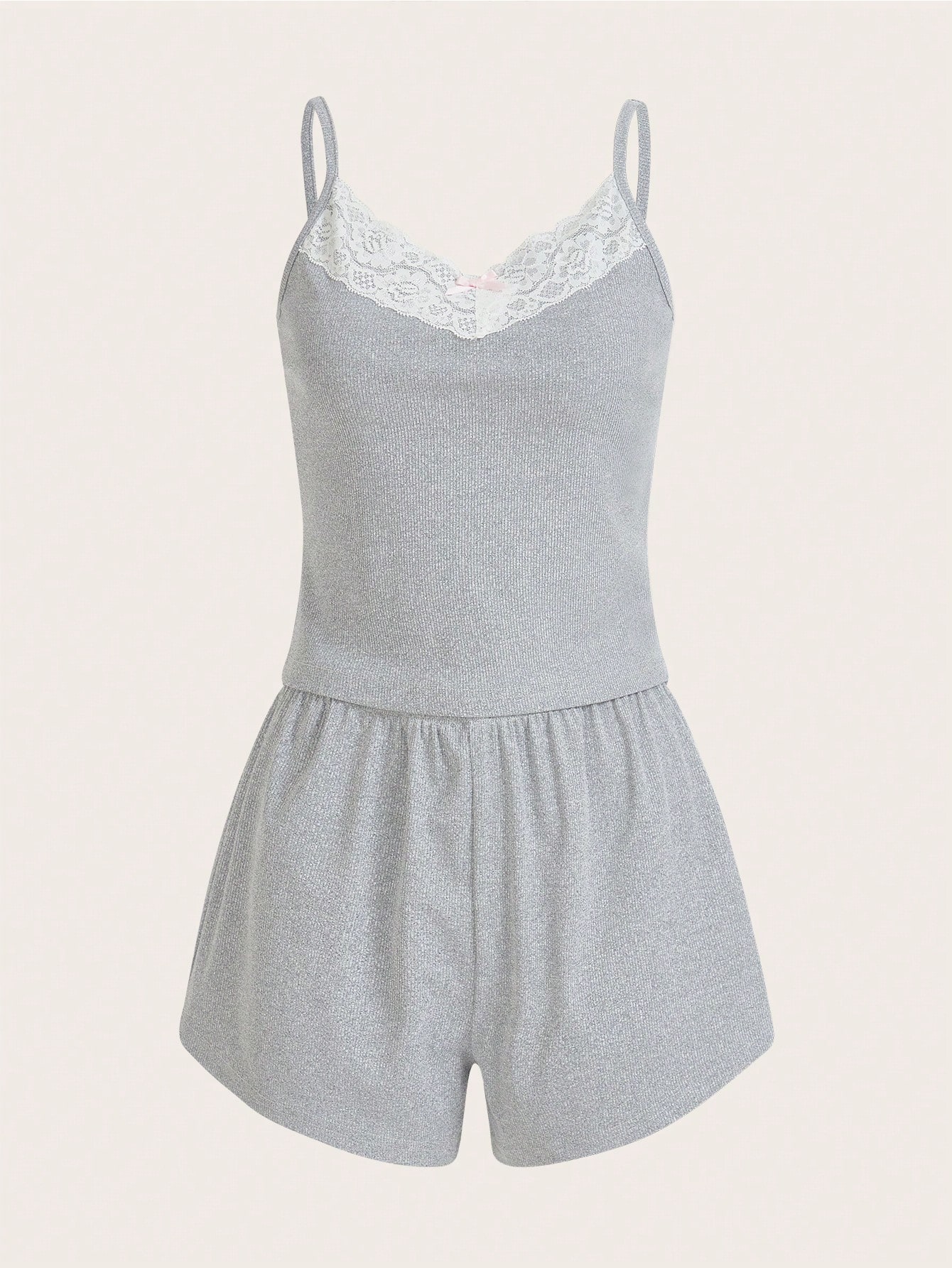 Set Lounge Top bretelle sottile & Shorts pizzo a contrasto