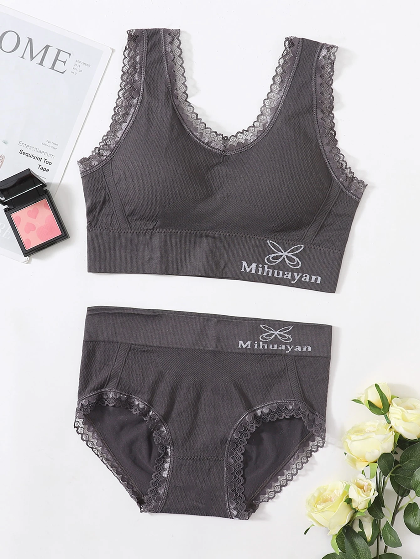 Set lingerie pizzo a contrasto con grafica lettera