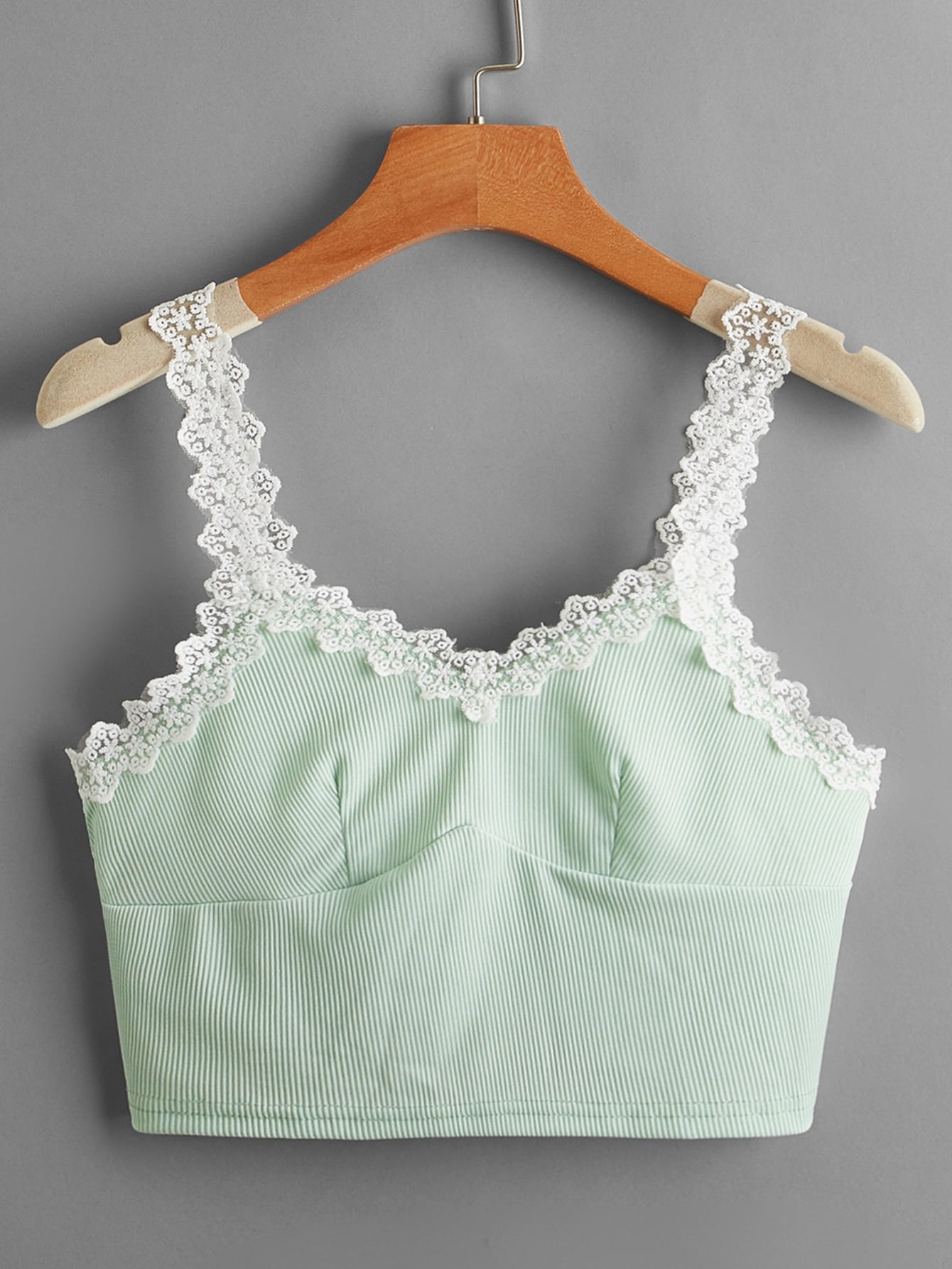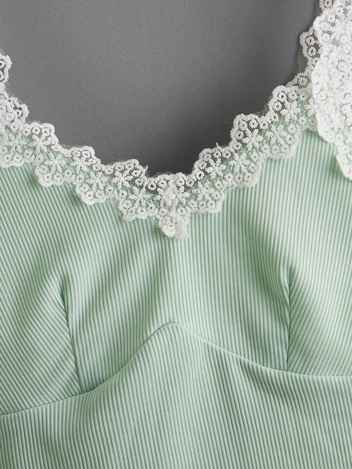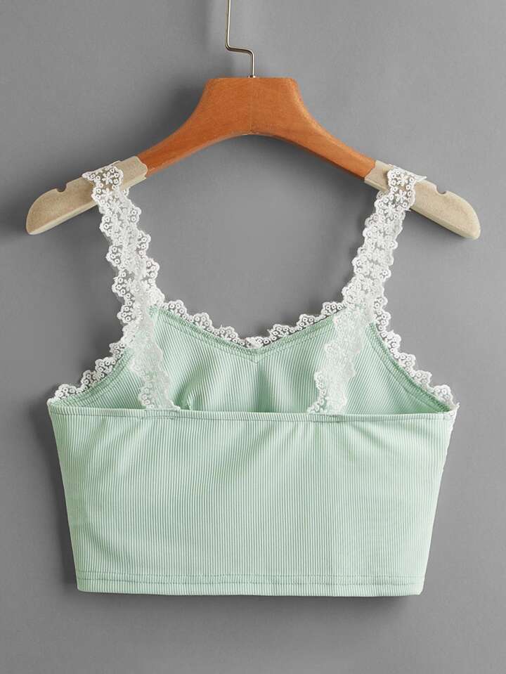 Top corto con bretelle sottile a costine con pizzo