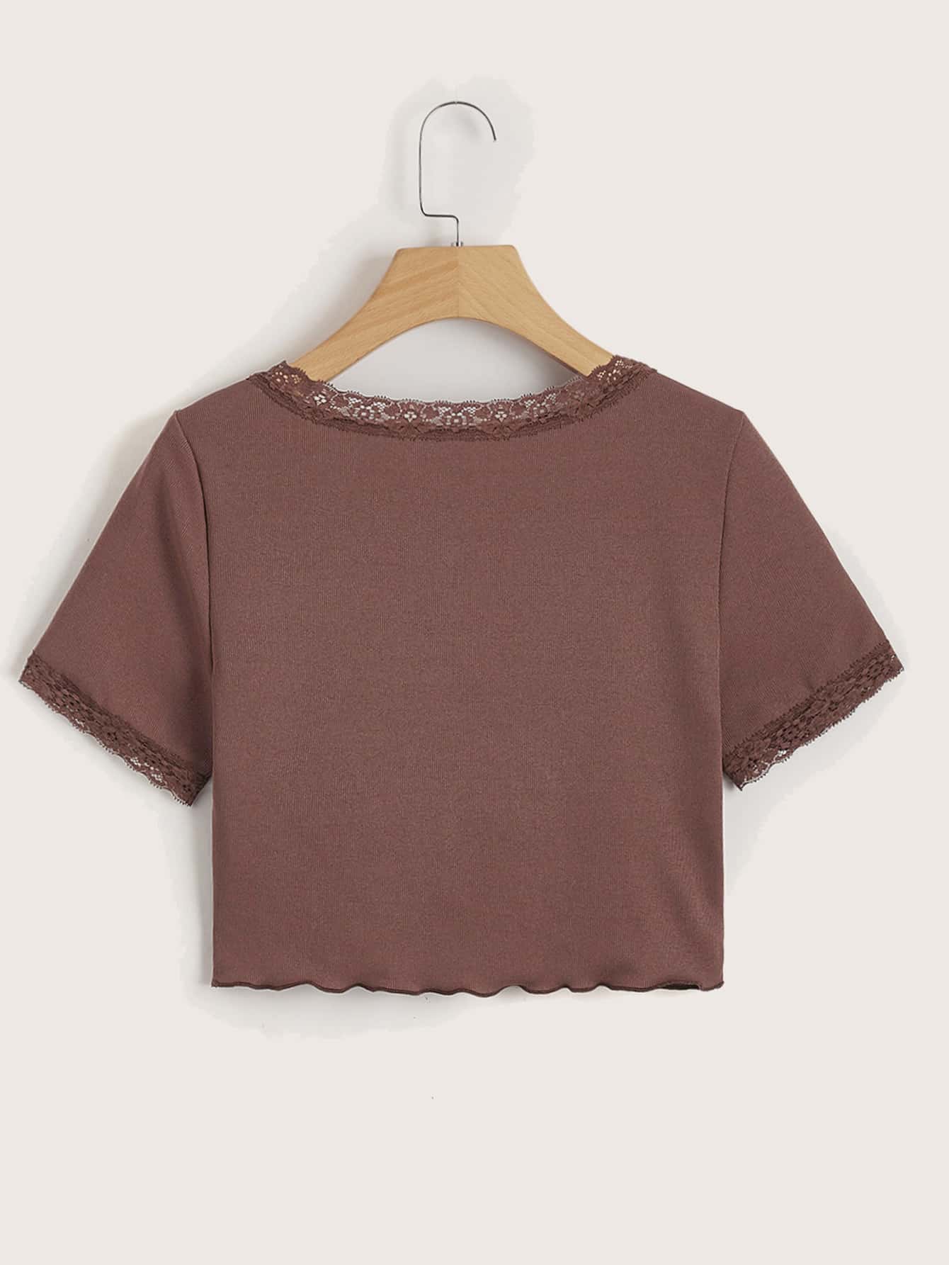 Maglietta pizzo a contrasto a costine
