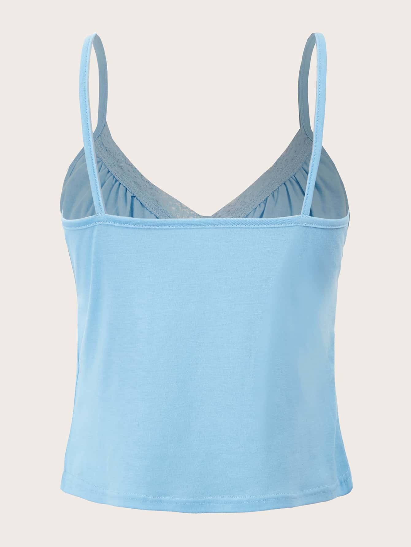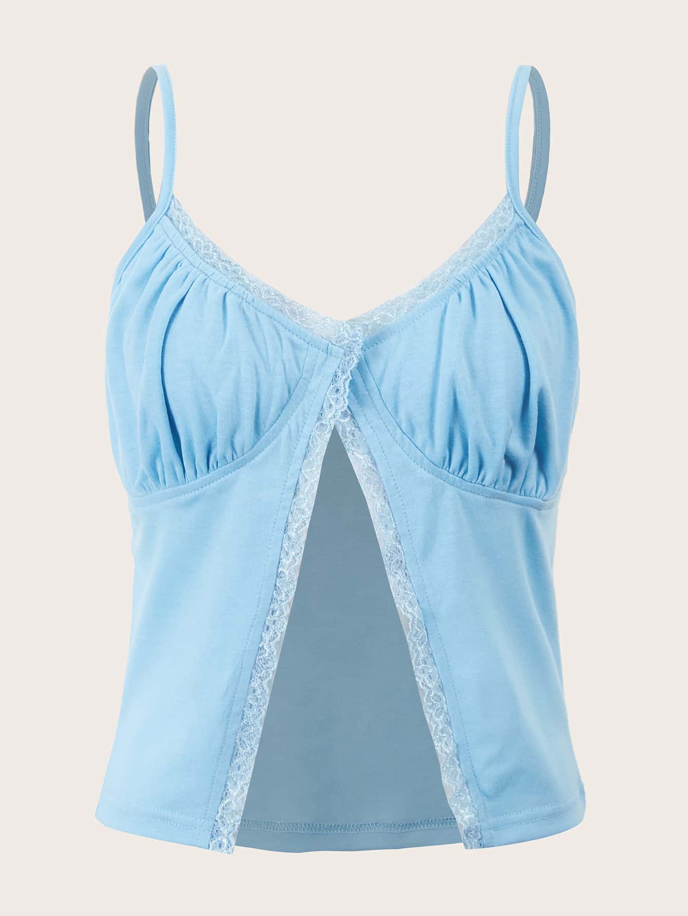 Top con bretelle sottile pizzo a contrasto bustino arricciato