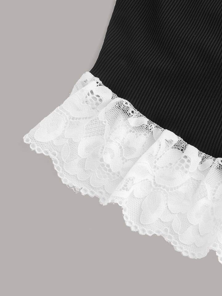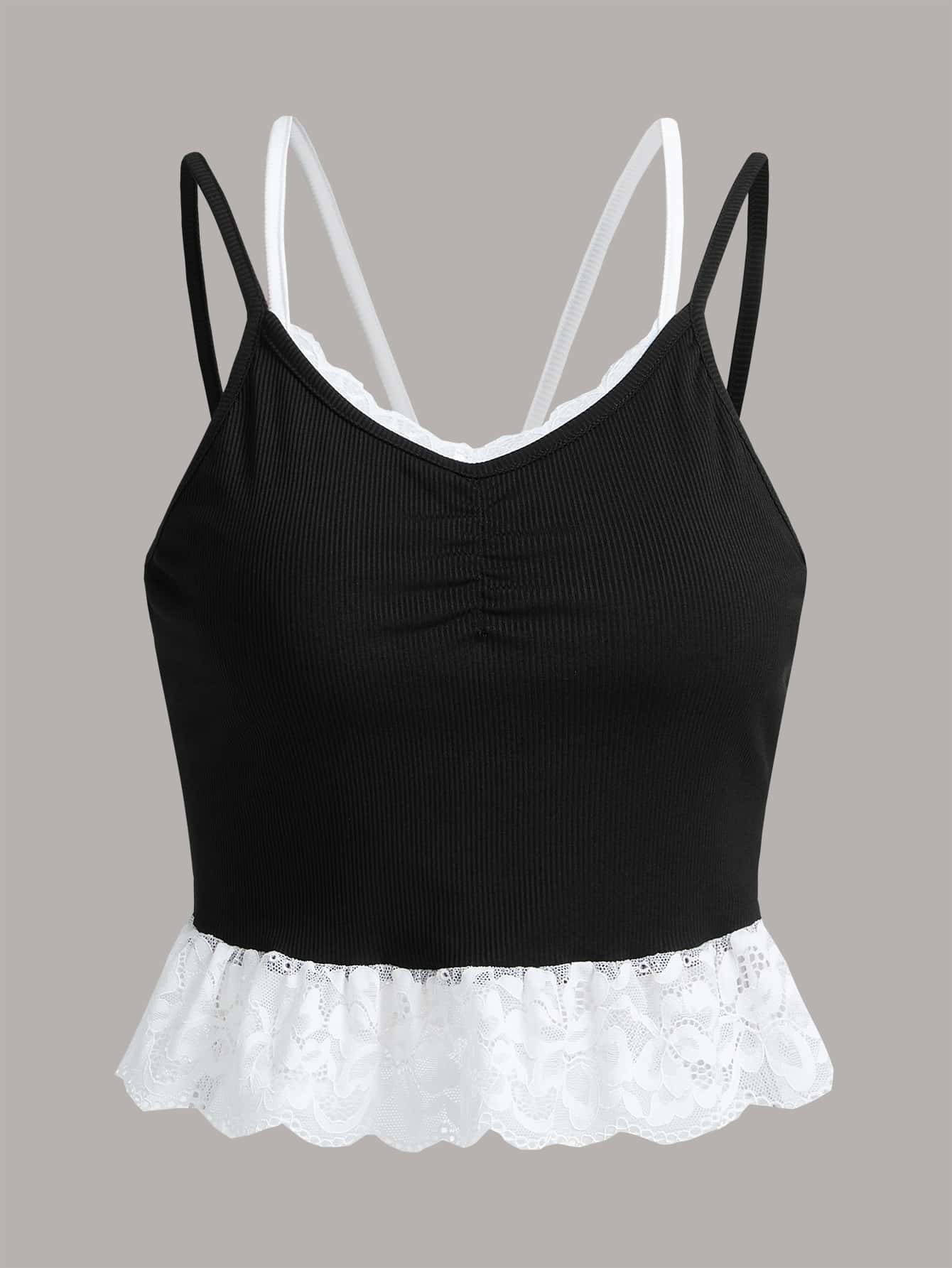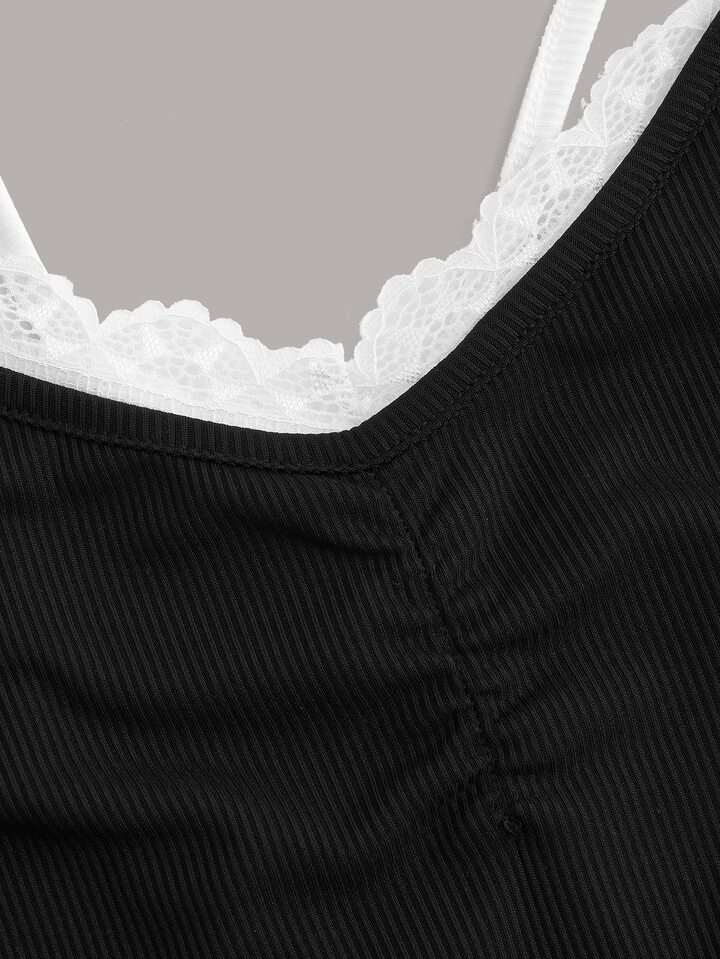 Top con bretelle sottile pizzo a contrasto plissettato a costine