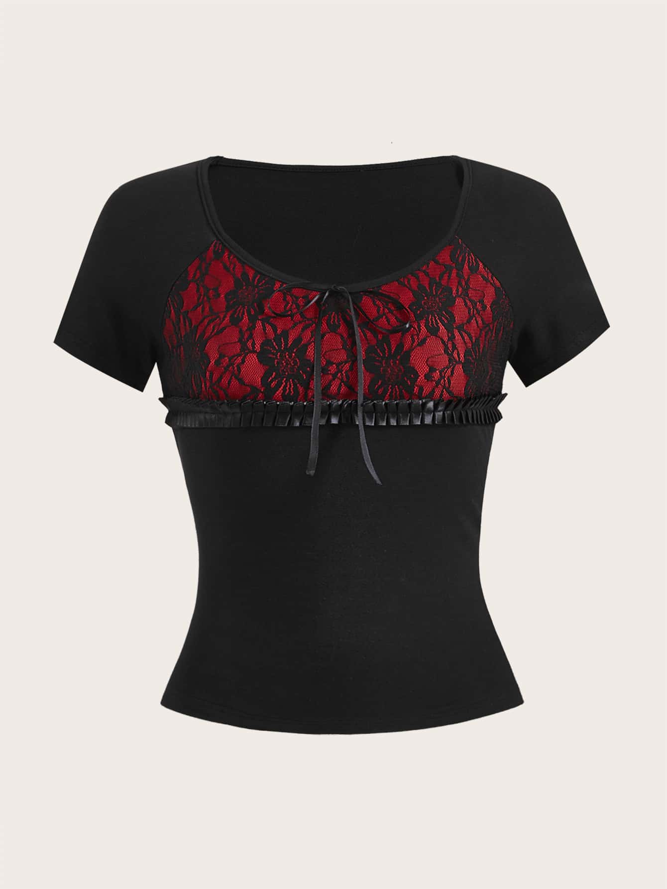 Maglietta pizzo a contrasto con nodo frontale