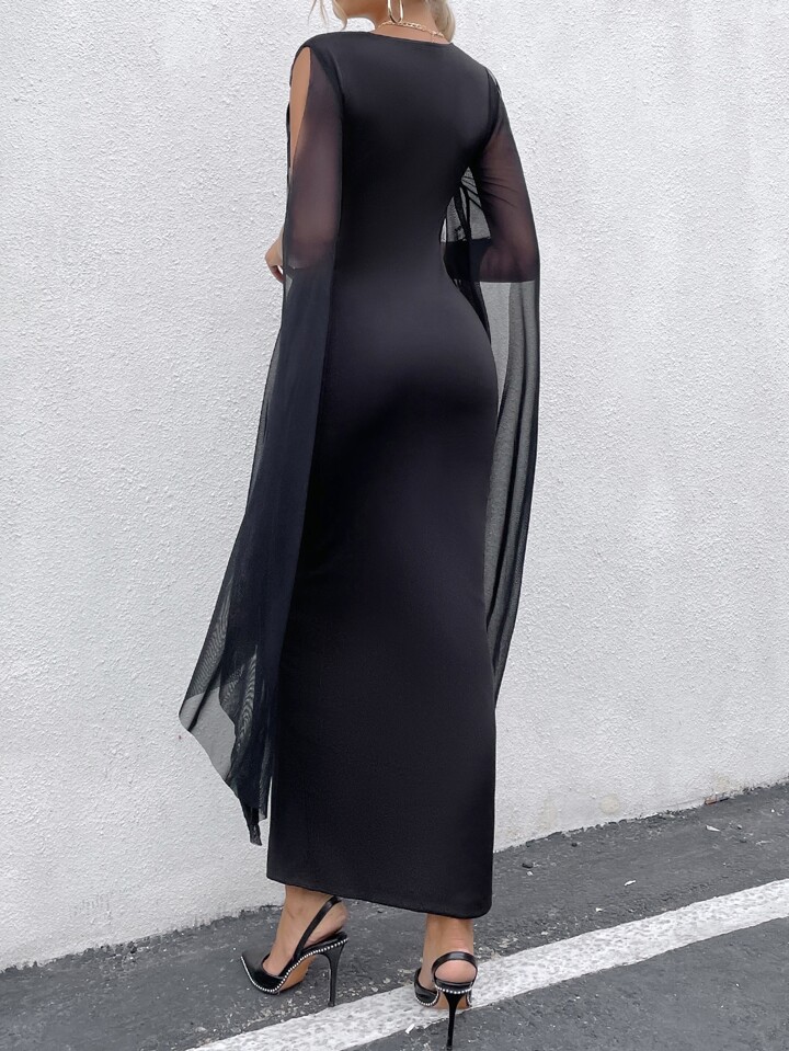 Abito Contrasto Mesh Torsate Fessura alta Colore unico Elegante