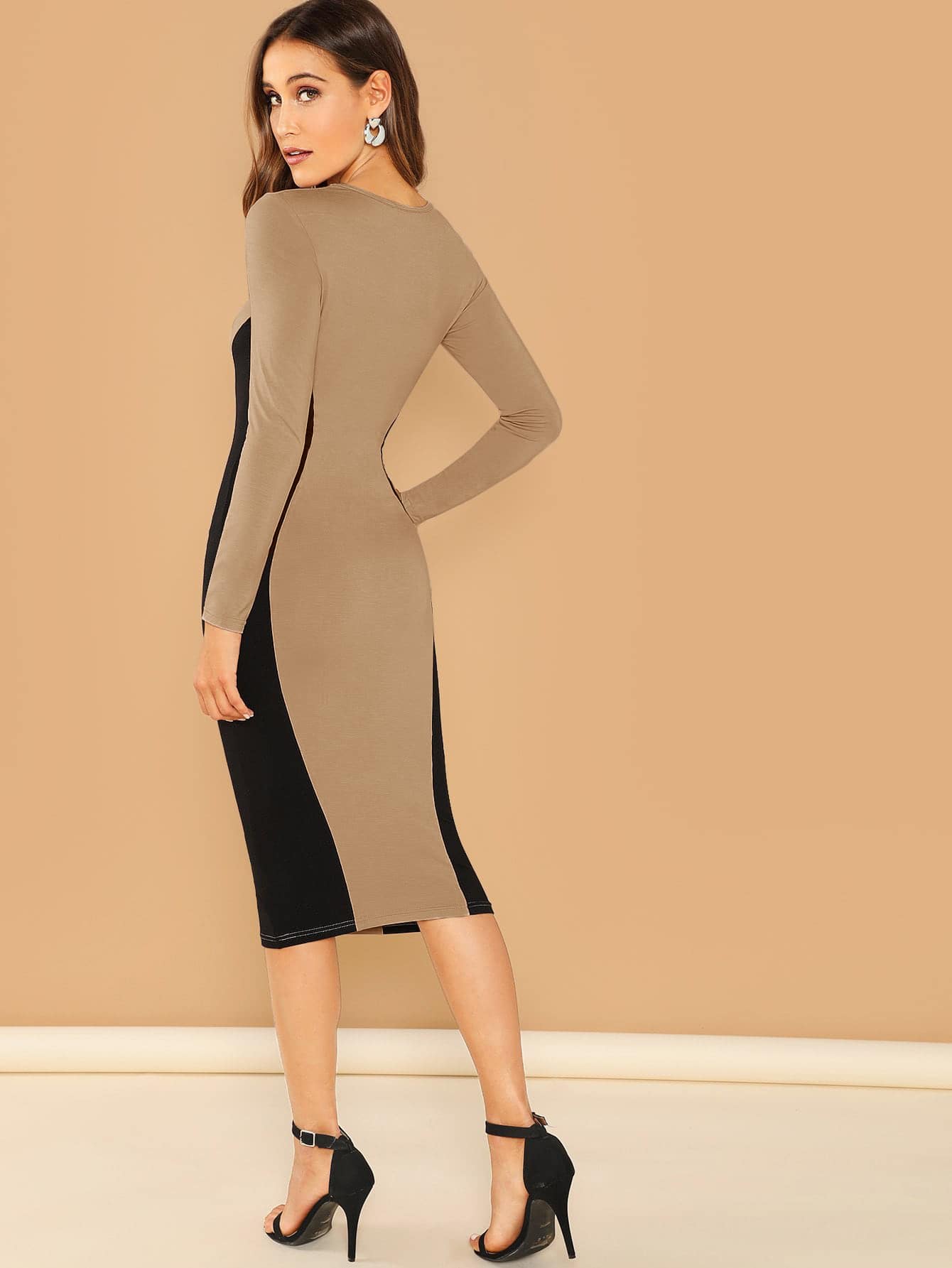 Abito midi a tubino bicolore