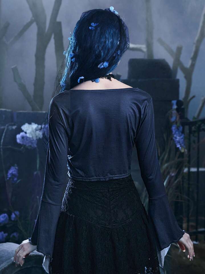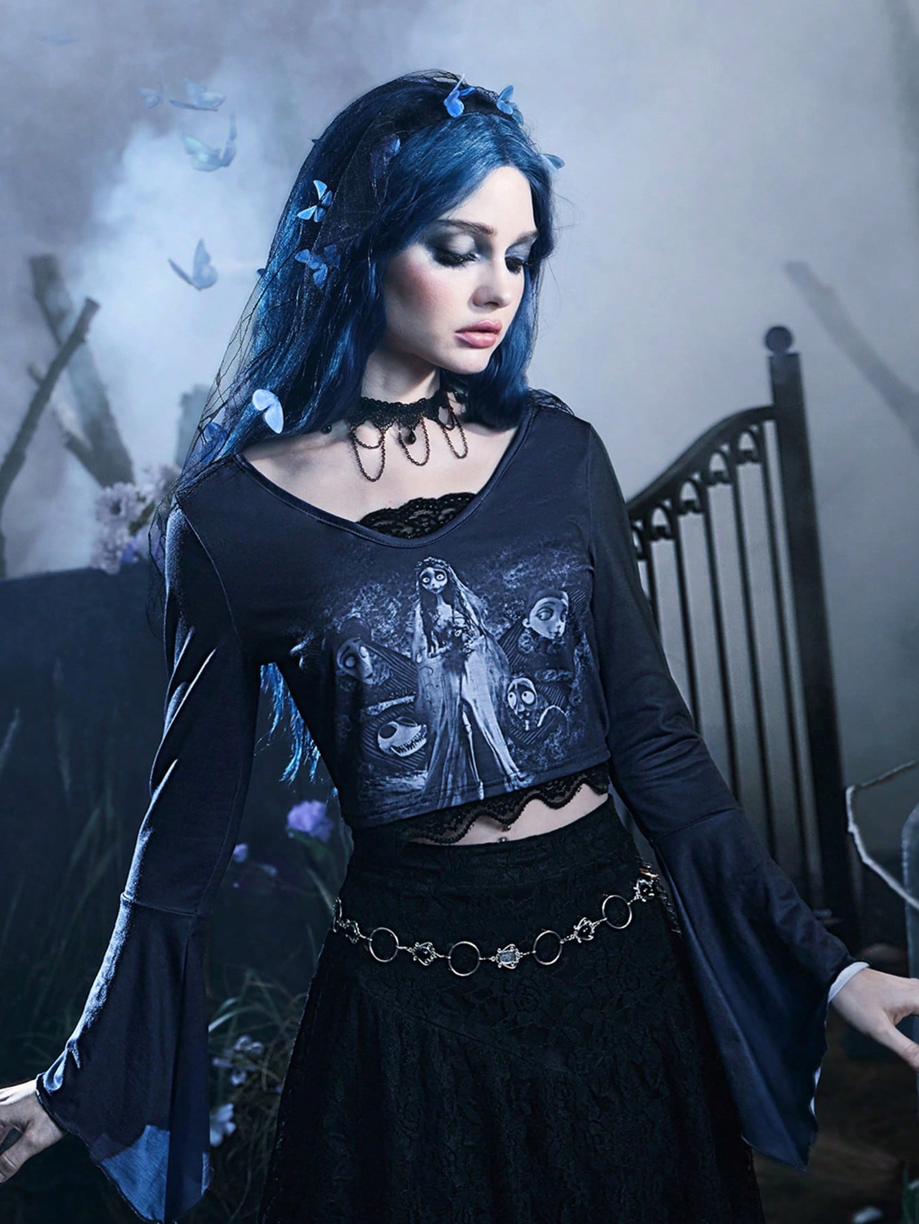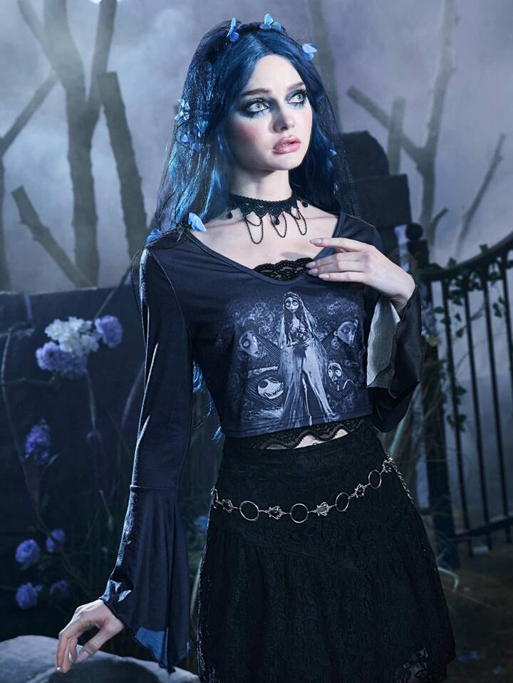 Corpse Bride | ROMWE Maglietta con stampa figura pizzo a contrasto