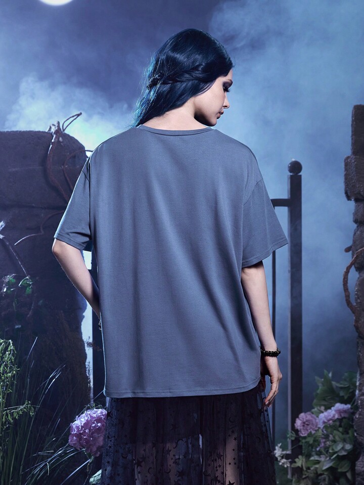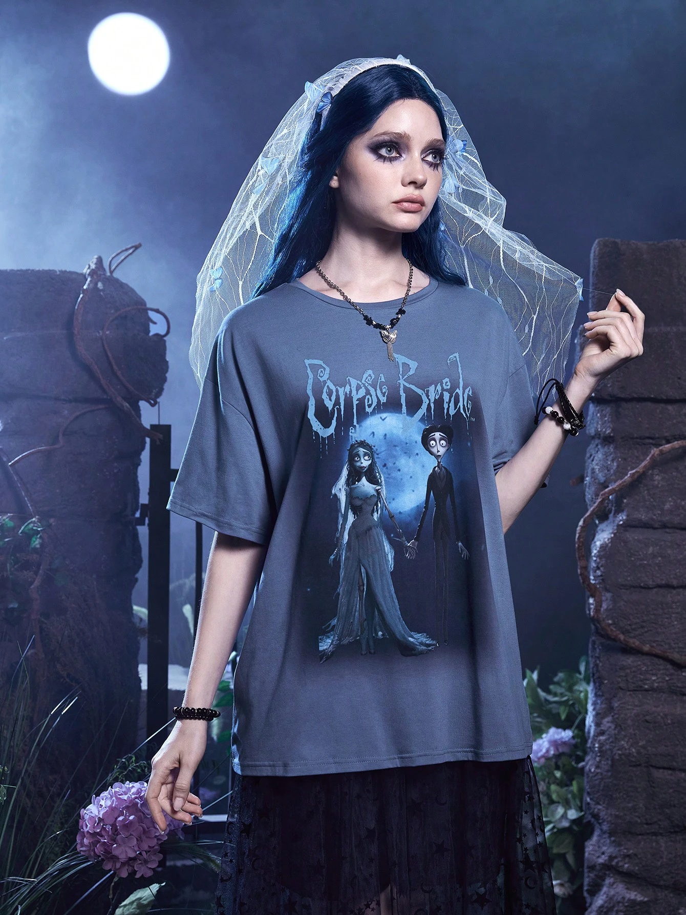 Corpse Bride | ROMWE Maglietta con spalla cadenti con stampa figura