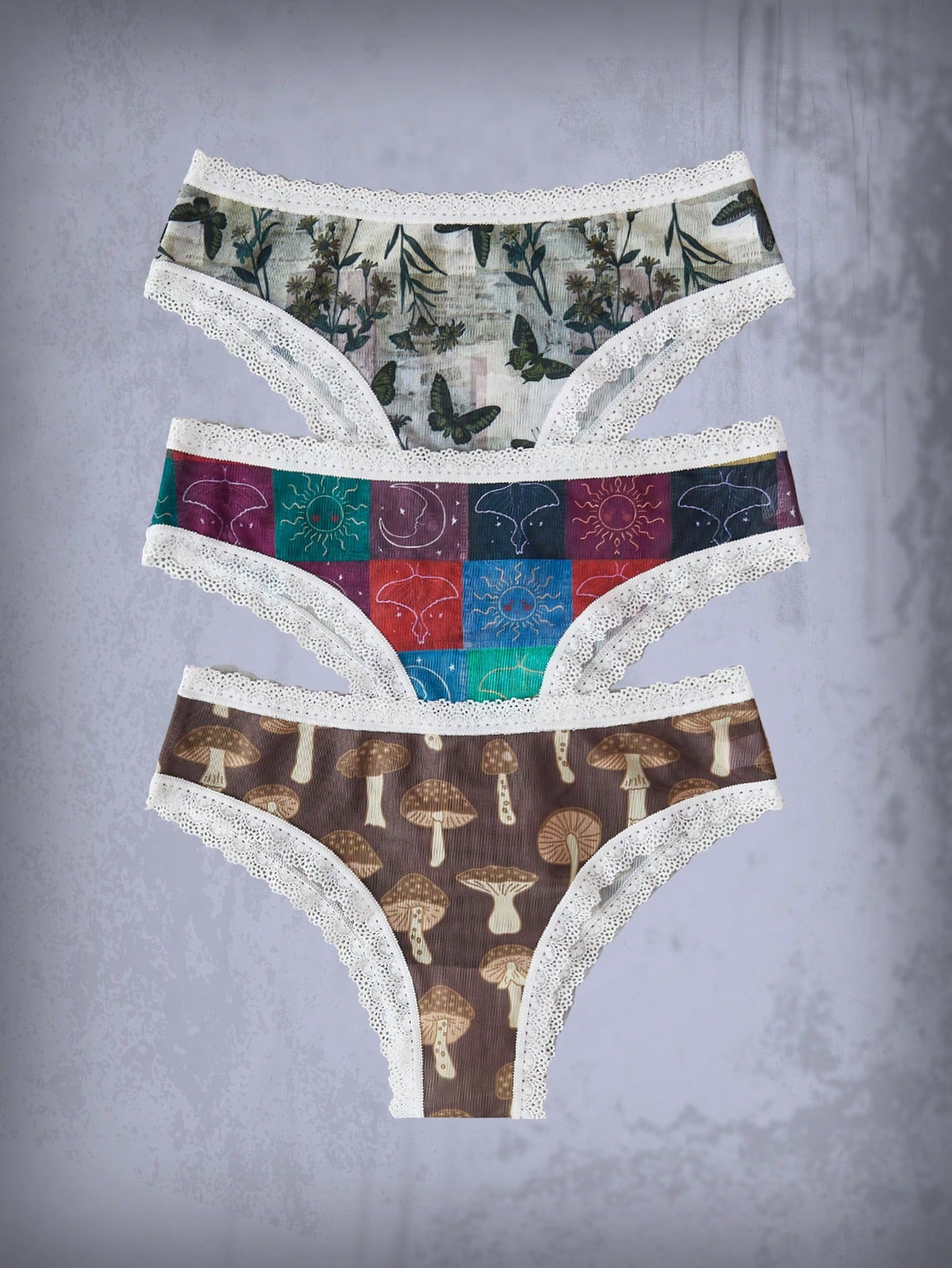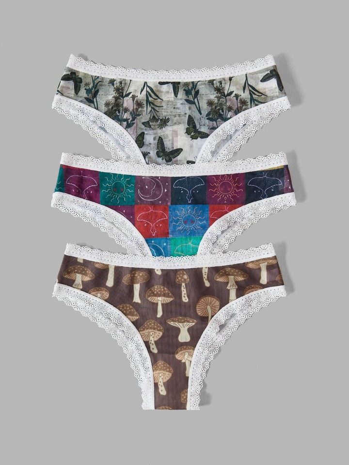 CourtneyGrabenShop 3 pacchi Set mutandine con stampa funghi pizzo a contrasto
