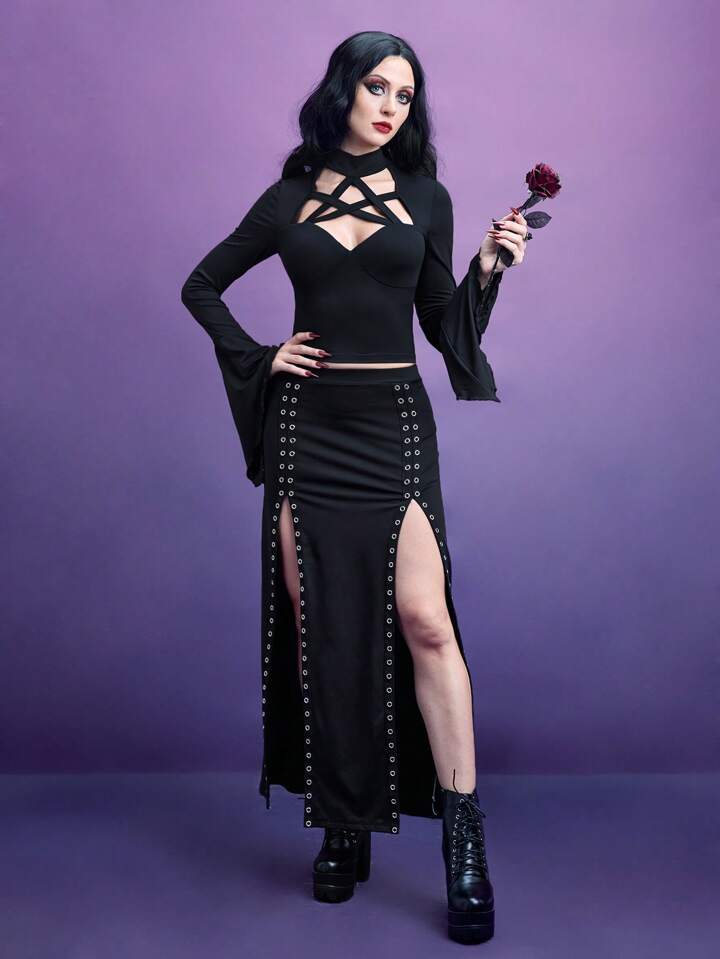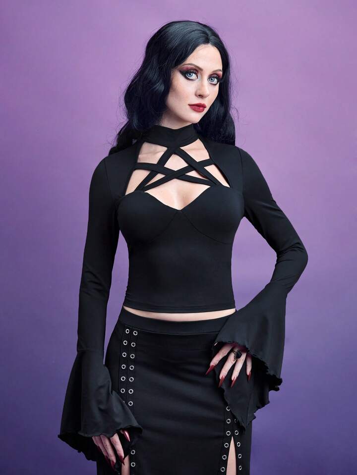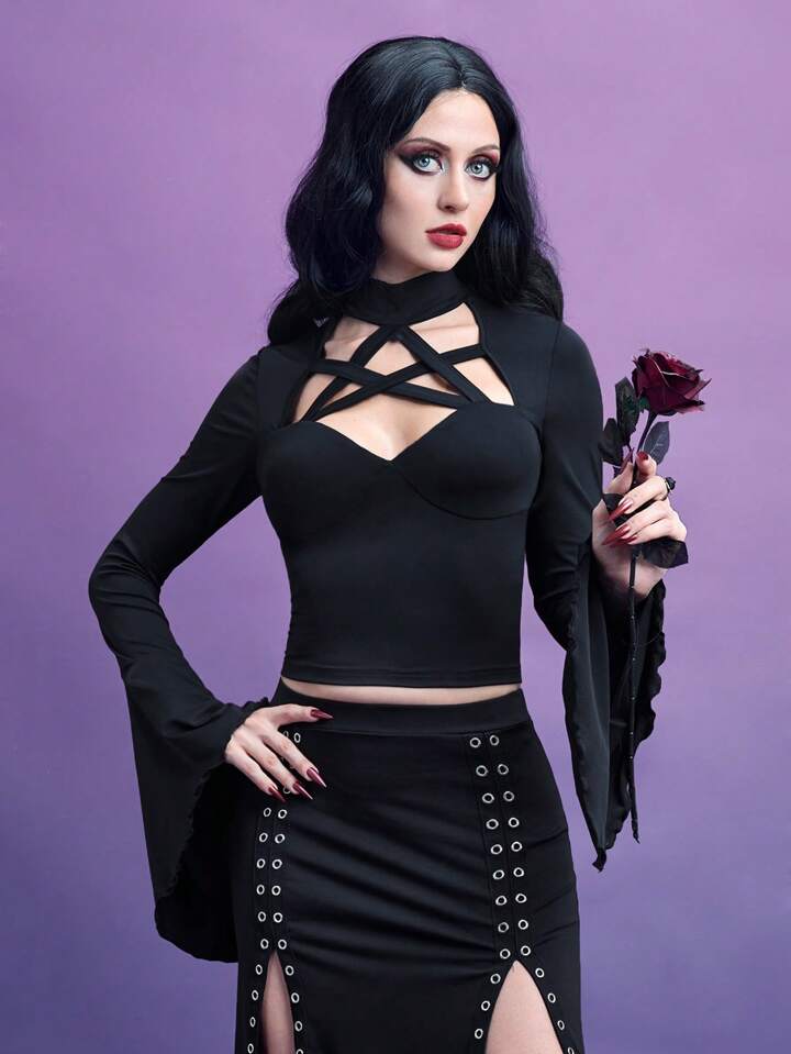 Maglietta corta incrociato ritagliato davanti manica a campana
