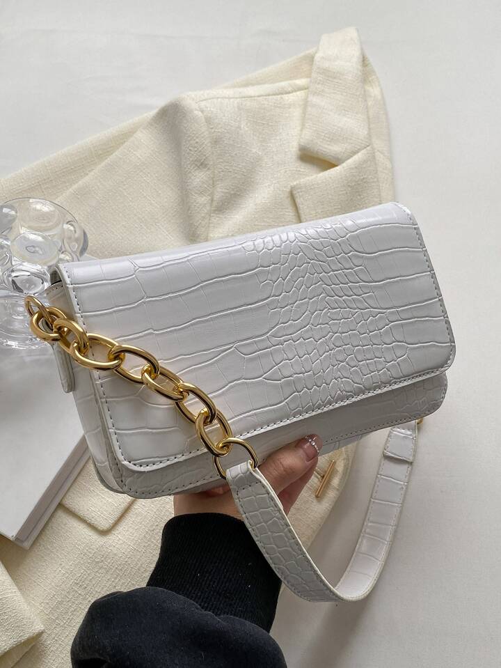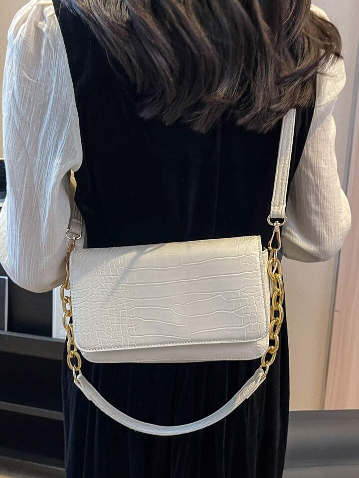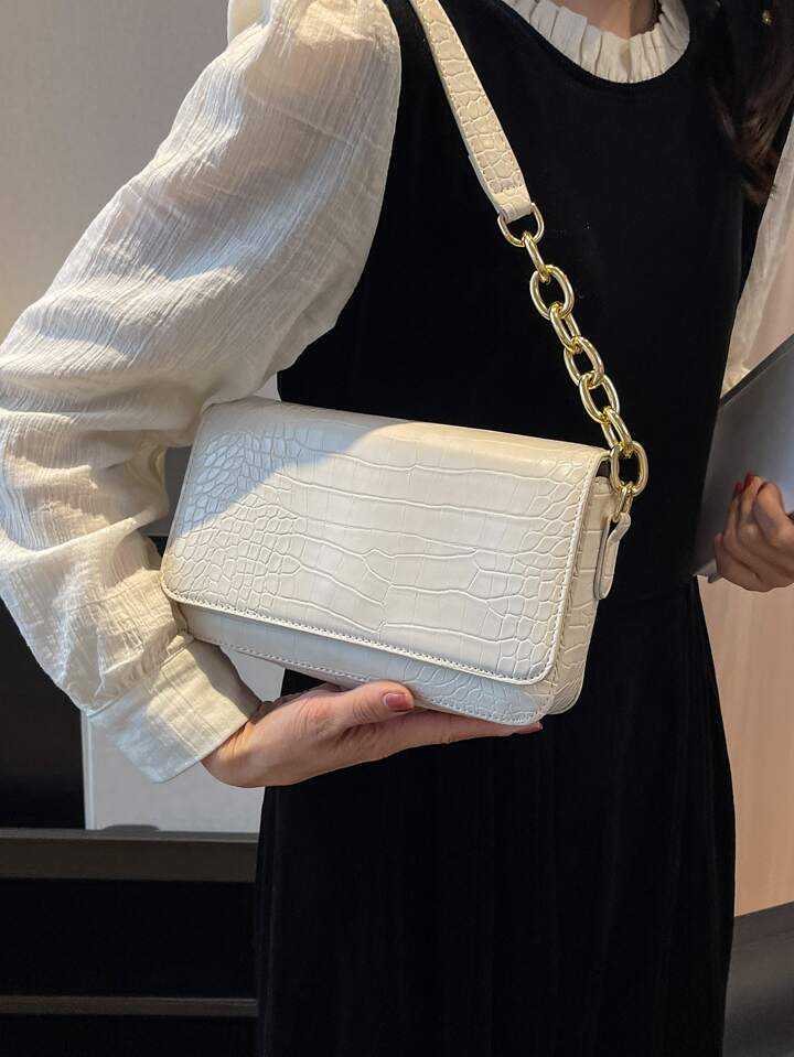 Borsa quadrata effetto coccodrillo patta elegante per lavoro ufficio