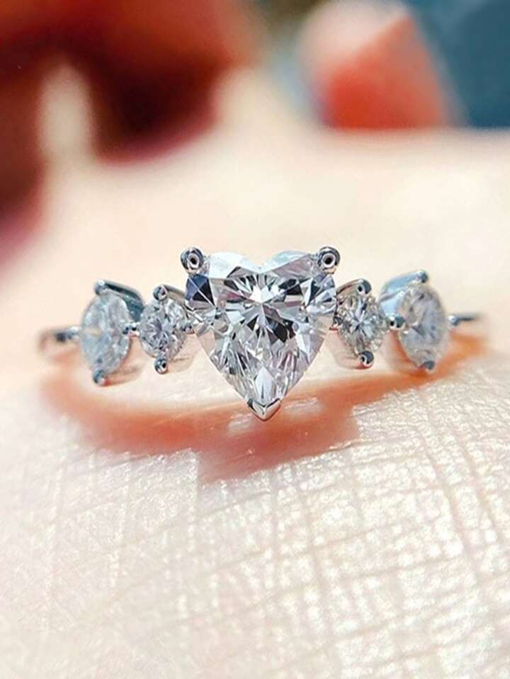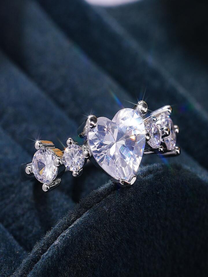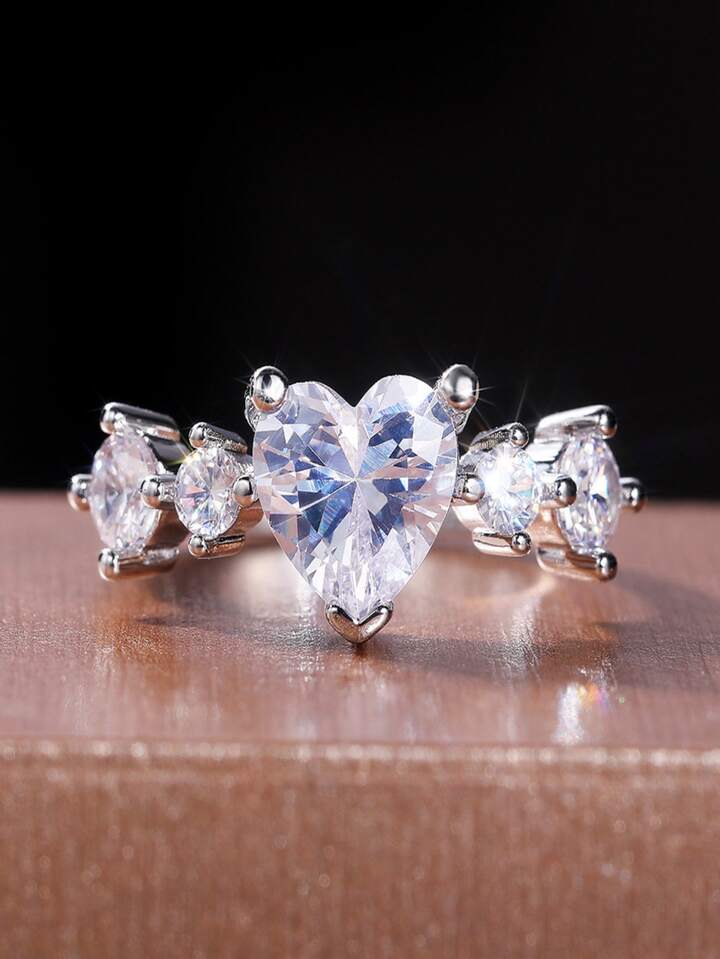 Anello del polsino zirconia cubica decorato a cuore