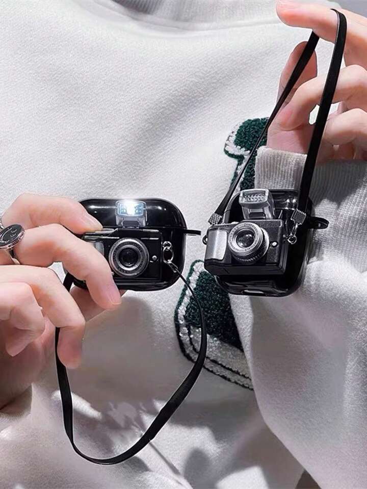 Custodia per cuffie AirPods 1/2 Pro divertente e carina con pendente a molla e macchina fotografica luminosa