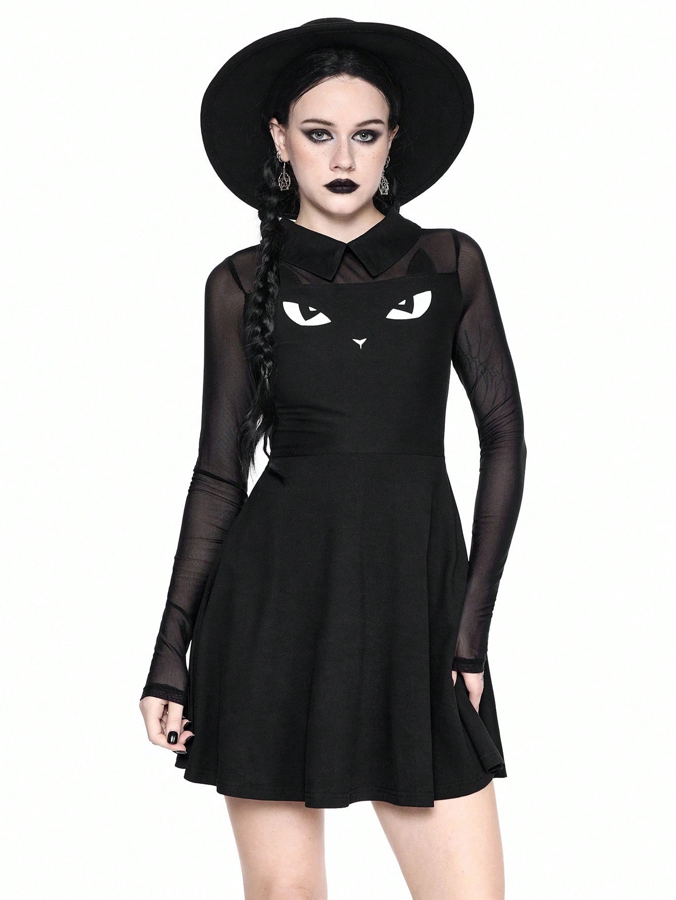 Goth Abito da donna con stampa grafica carina di gatti gotico per Ognissanti