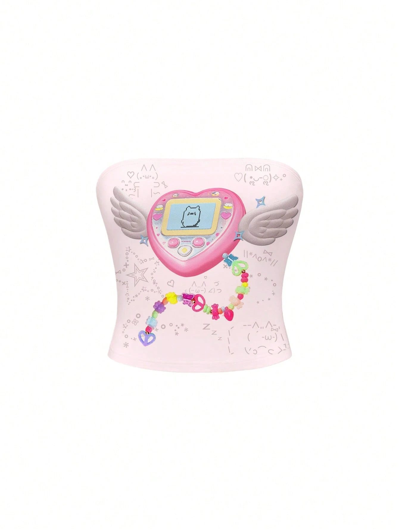 Ciondolo carino a forma di emoticon kawaii, accessorio per telefono a forma di animale elettronico in stile Y2K, top tubo con ali da angelo addormentato in stile coreano per primavera/estate, motivo gattino