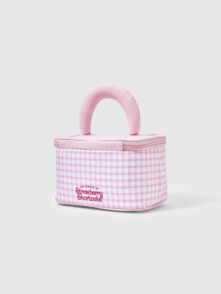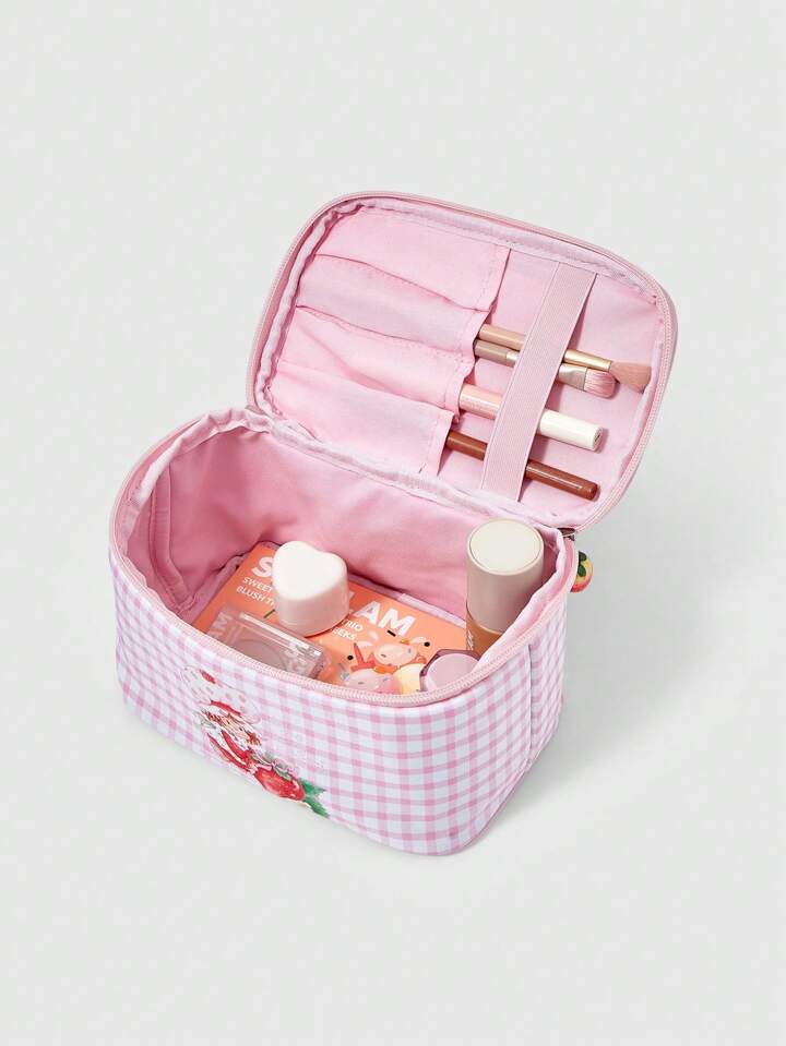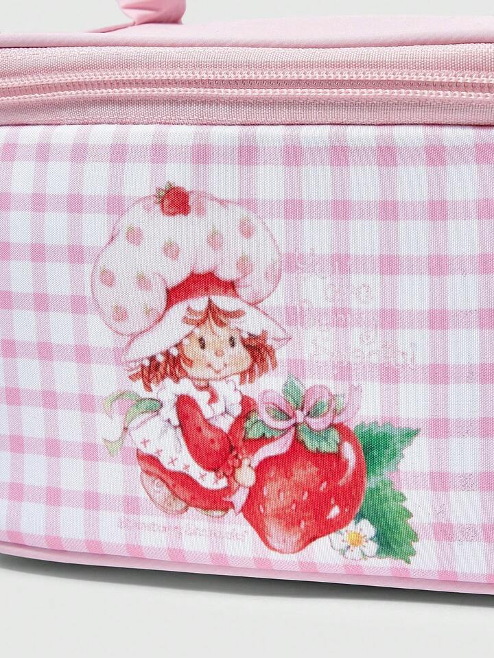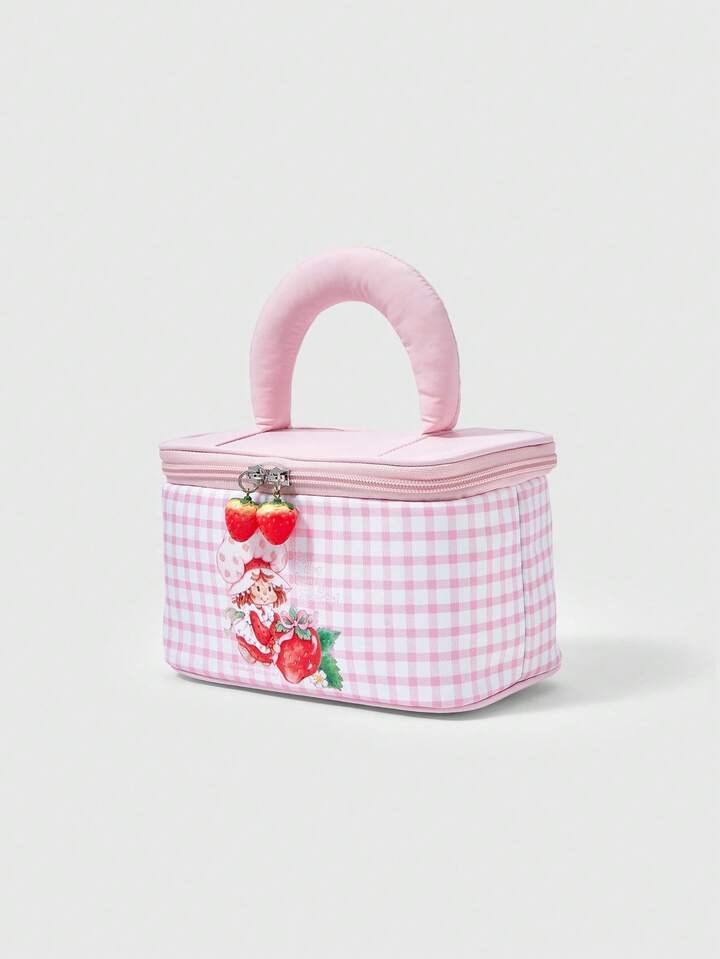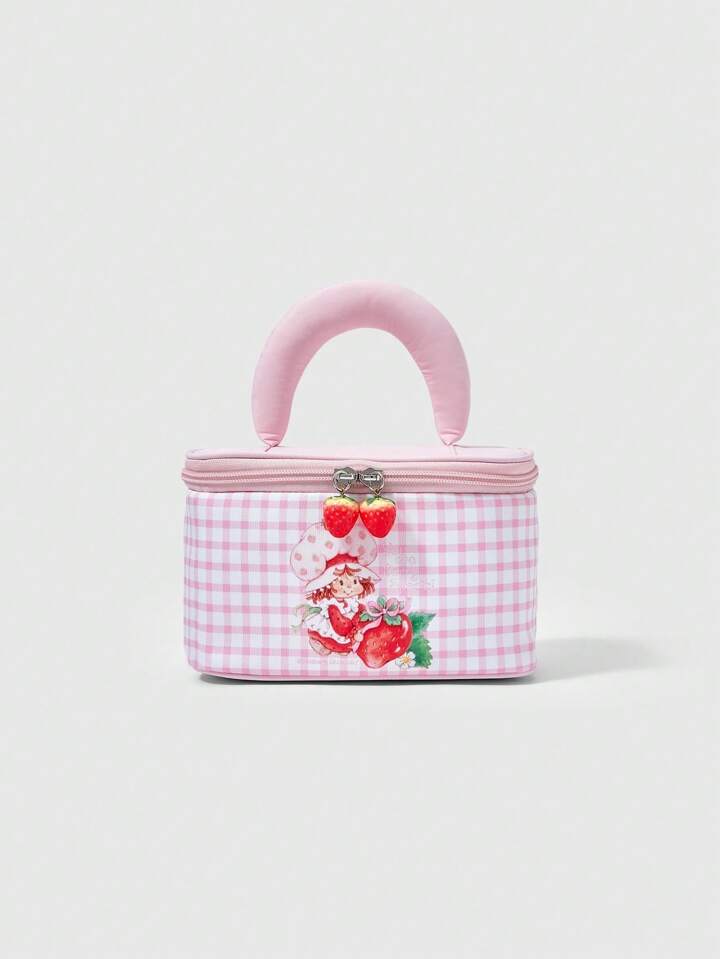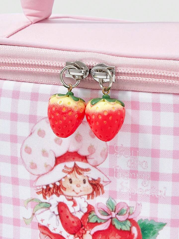 Borsetta cosmetica carina con stampa di fragole cartoni animati, borsa portatile imbottita per il trasporto