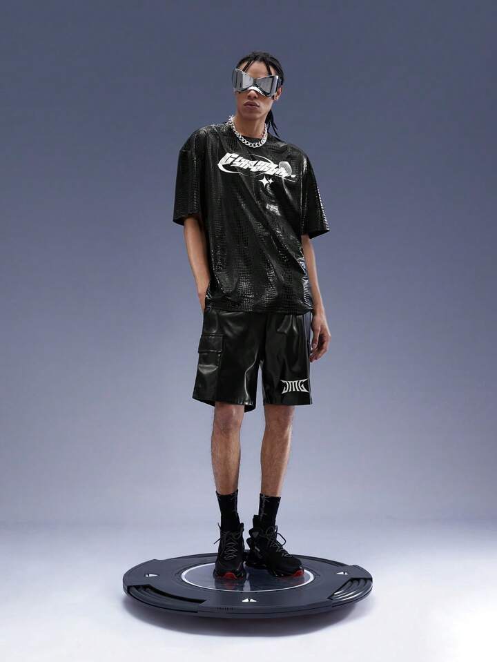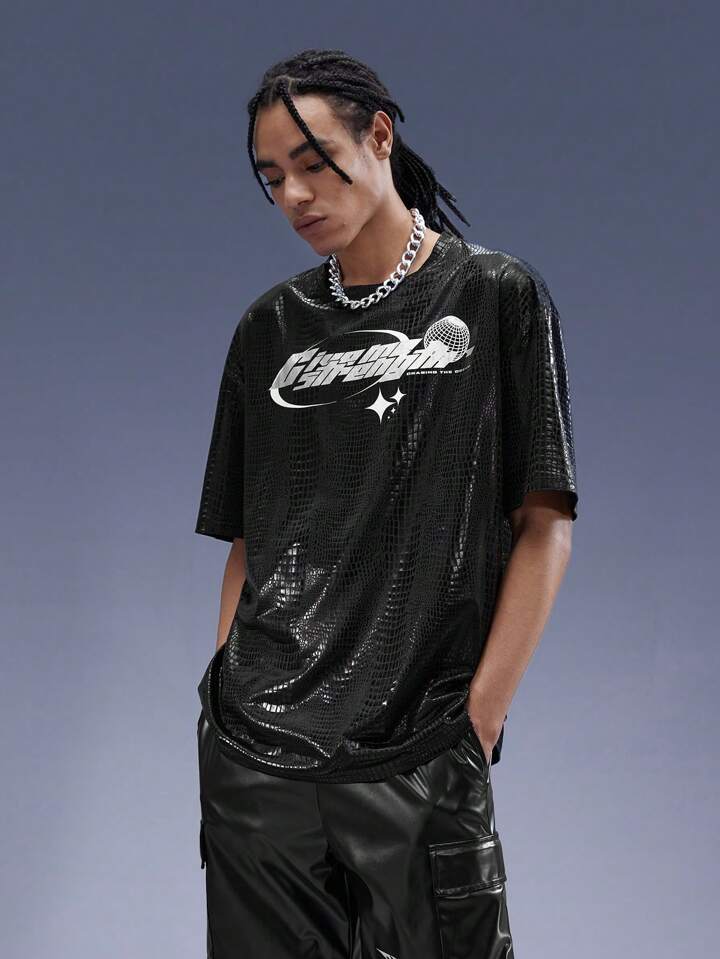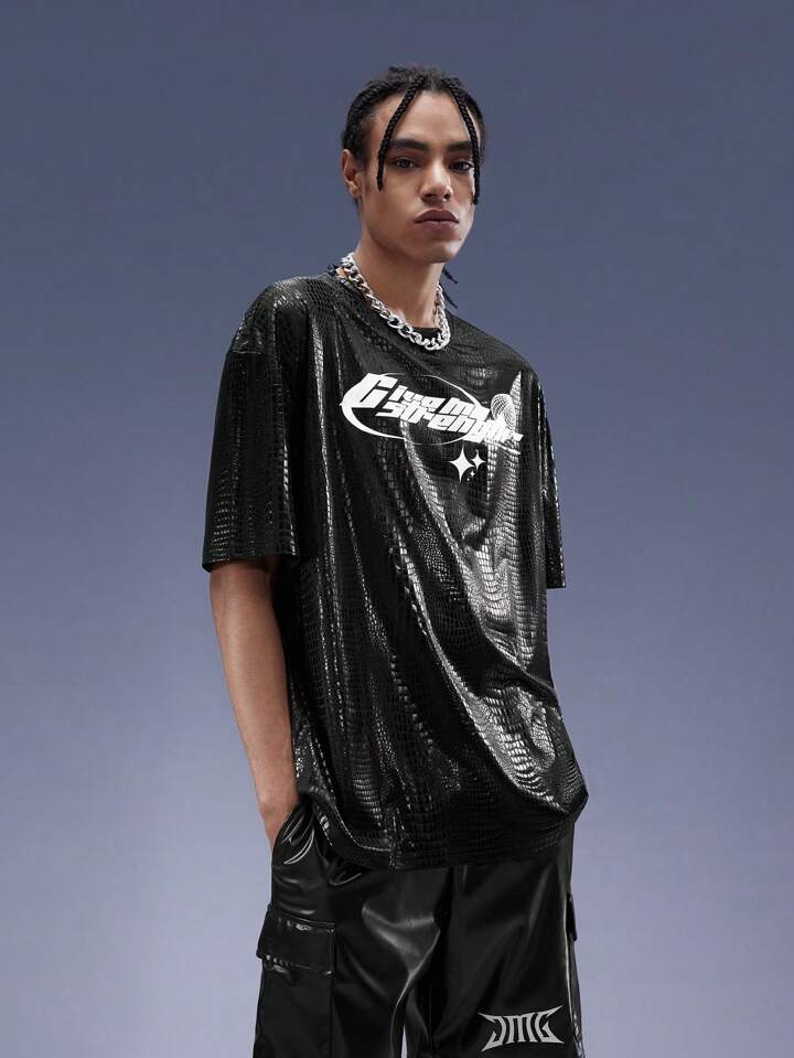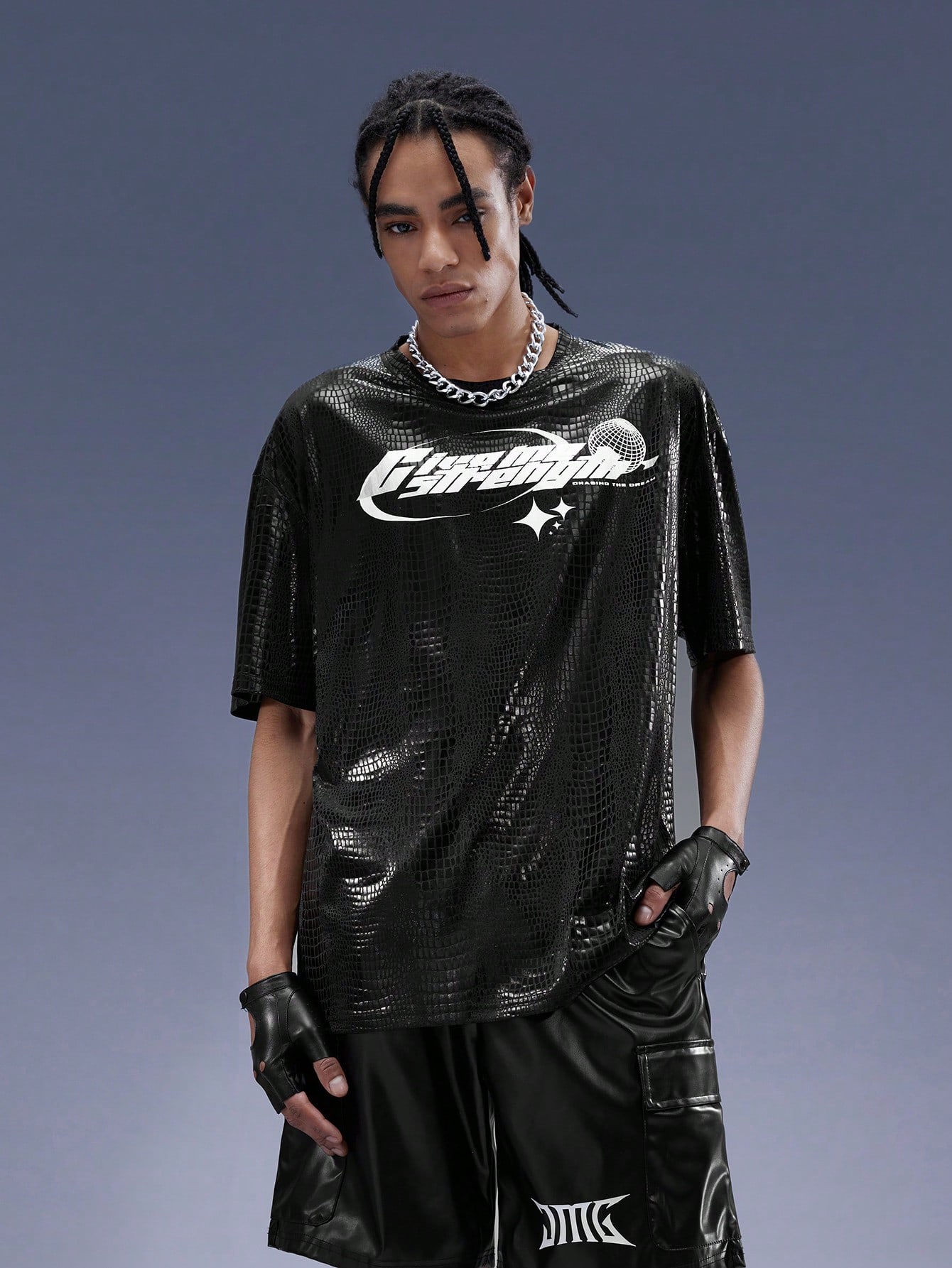 Cyber Luvr Ragazzi Maglietta con spalla cadenti con grafica lettera con stampa coccodrillo