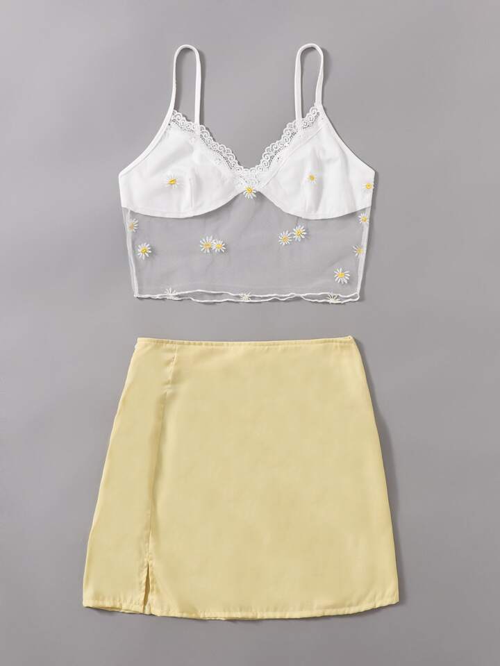 con ricamo margherita maglia Cami corti & monocolore Gonne