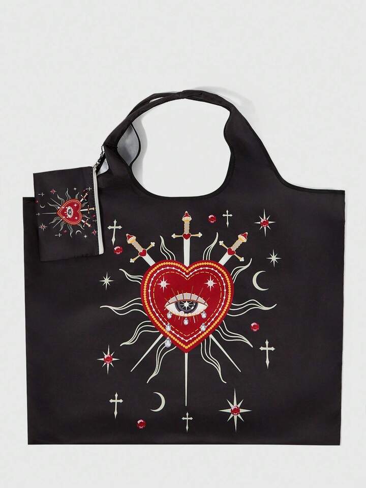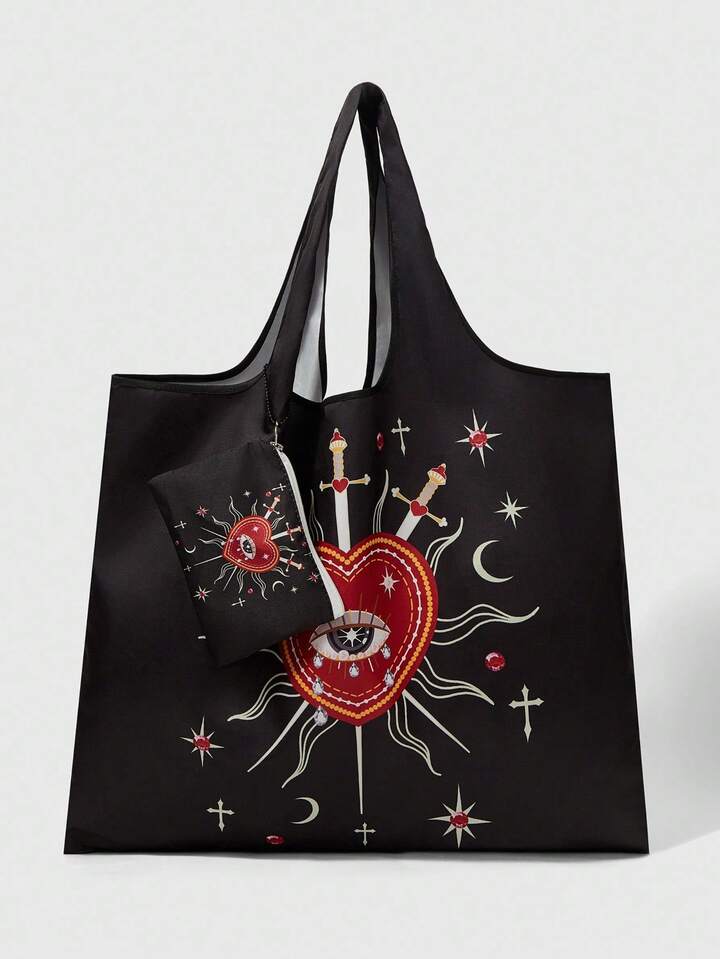 Goth Borsa shopping grande Gotica scura con stampa a croce per le donne