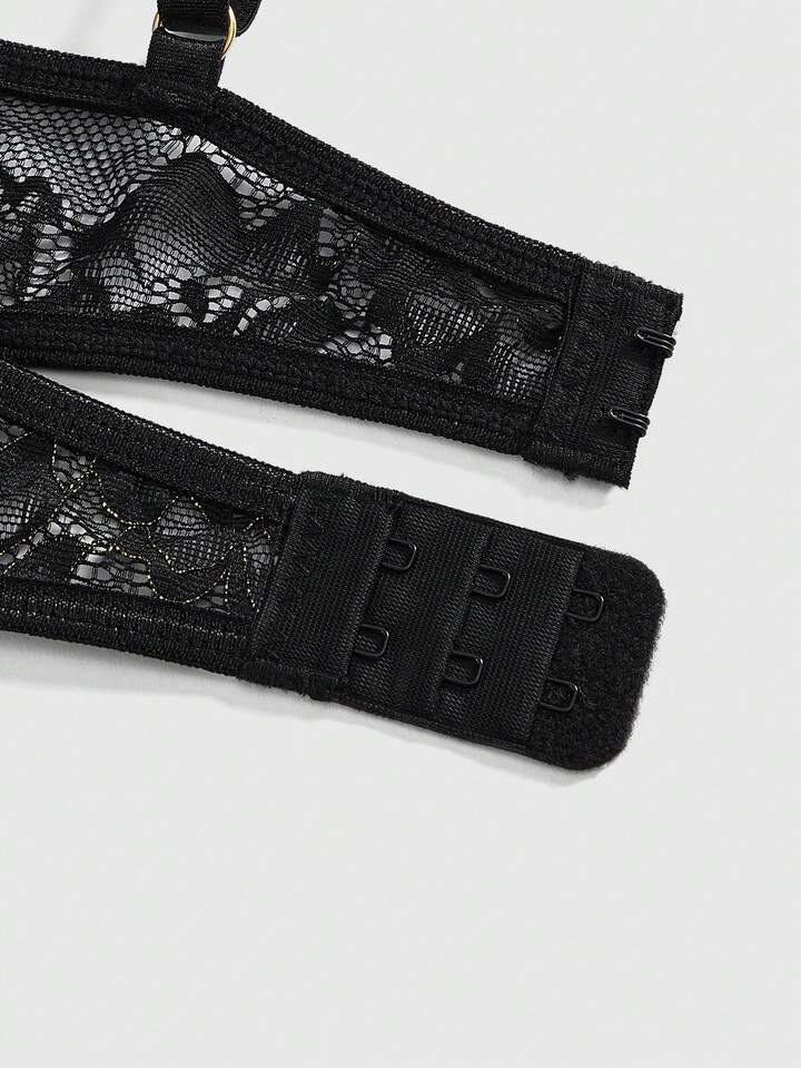 Goth Tuta intima con catena metallica e pizzo di stile gotico scuro, con reggiseno a fascia, scollo a V e apertura all'inguine sexy