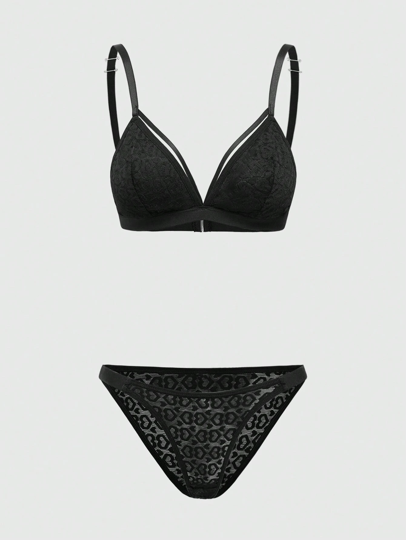 Goth Set di reggiseno senza fili e perizoma in pizzo stile gotico scuro per donne