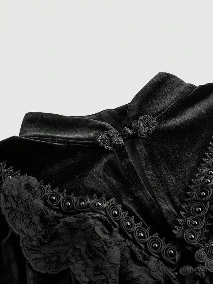 Goth Mantella donna stile gotico vintage, con collo in pizzo e rouches, a contrasto con il velluto