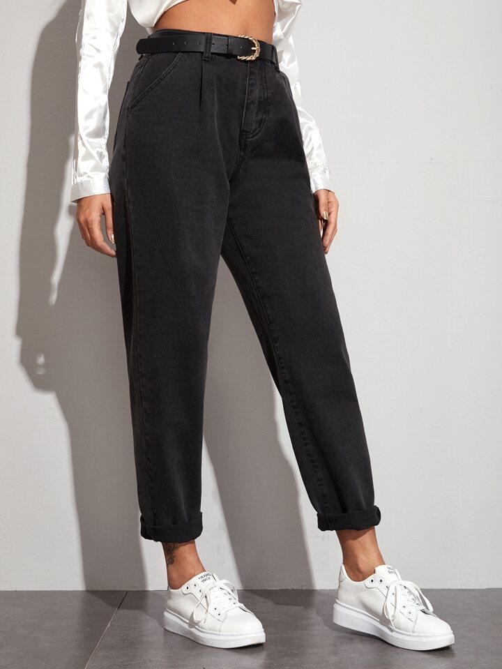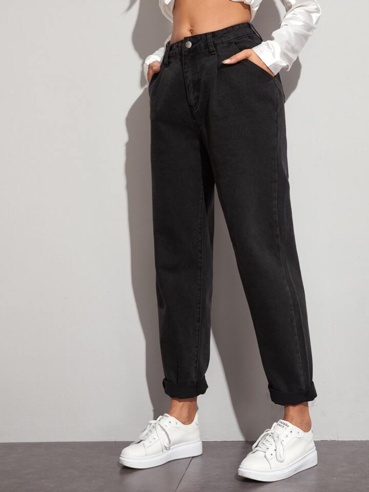 Jeans da donna senza cintura, casual con bottoni, tasche e zip, gambe diritte naturali, lunghi, in cotone nero, vestibilità regolare, adatti per primavera/autunno, uso casual quotidiano