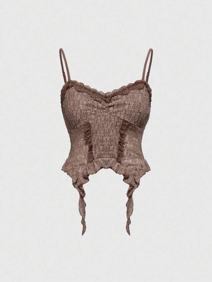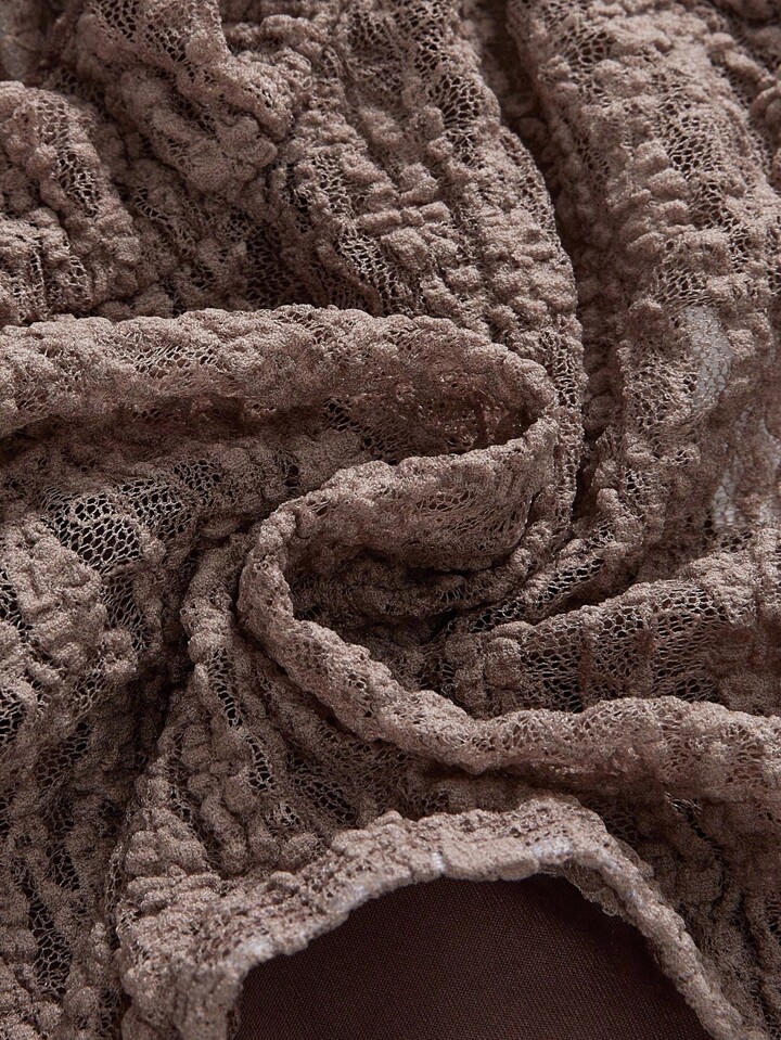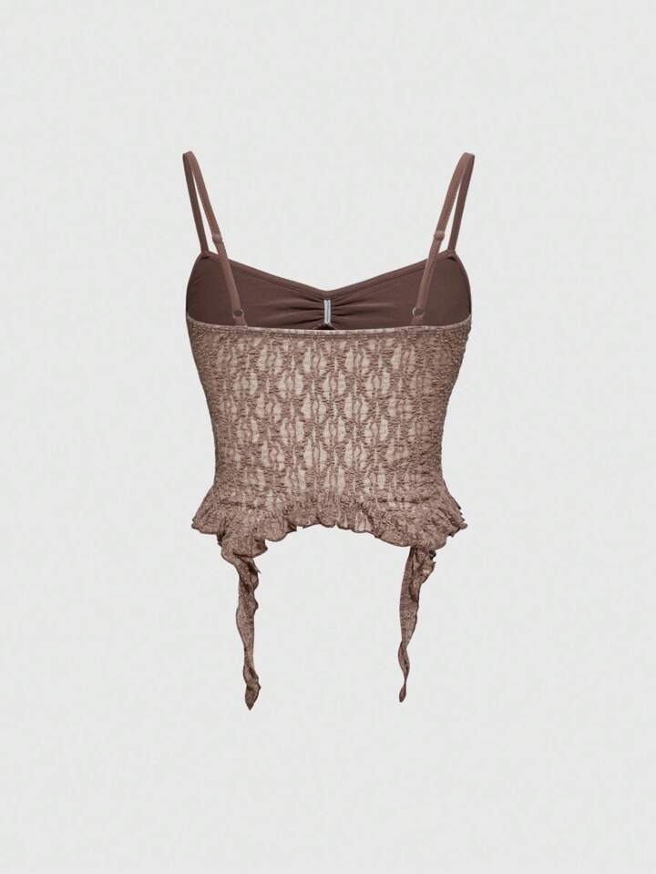 Canottiera attillata con orlo asimmetrico in pizzo e texture consunta