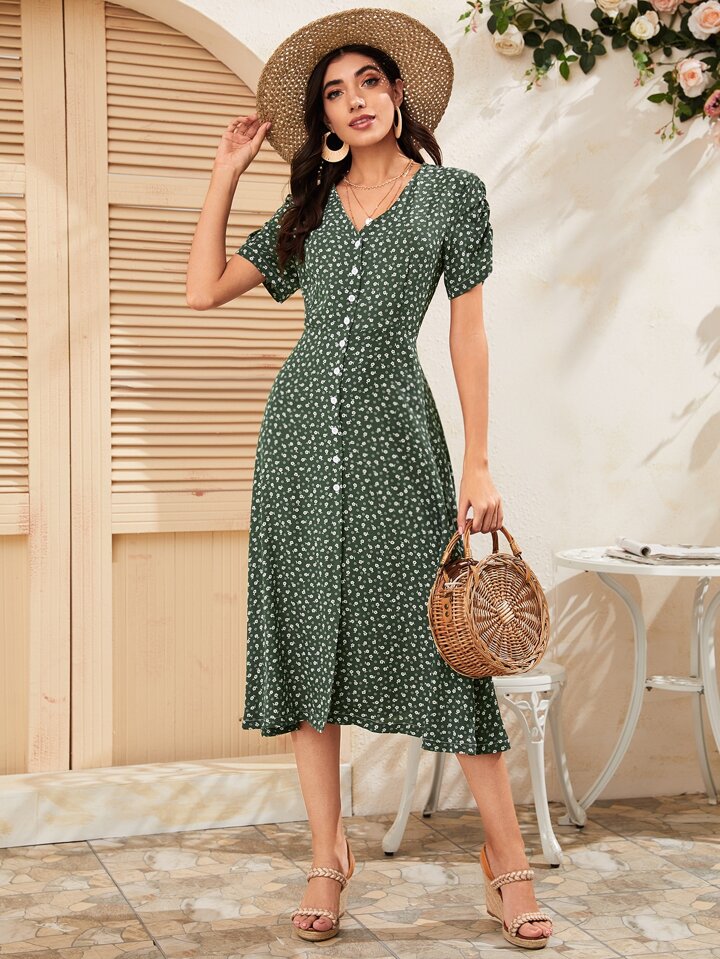 Abito ditsy floreale con bottone