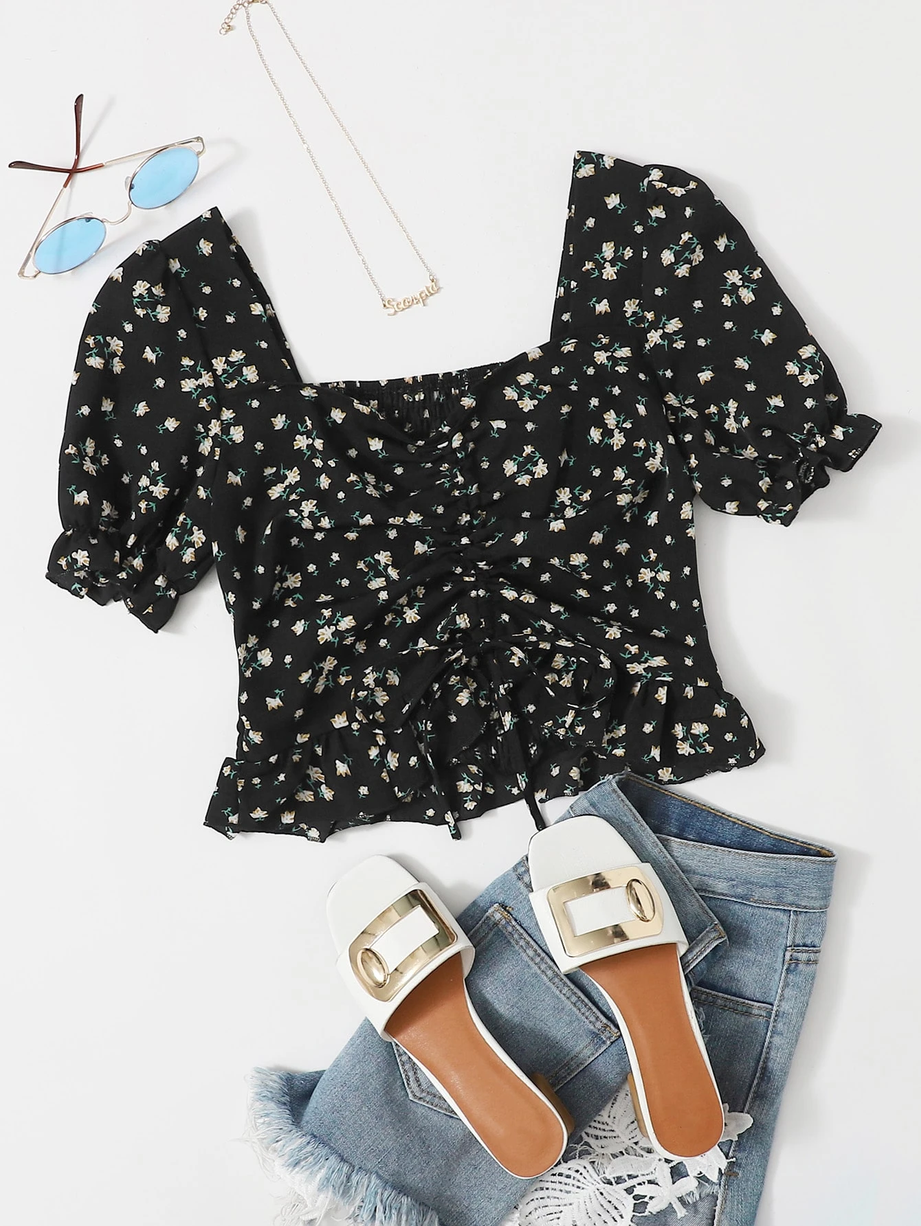 Camicie Volanti Ditsy floreale nero Bochnia