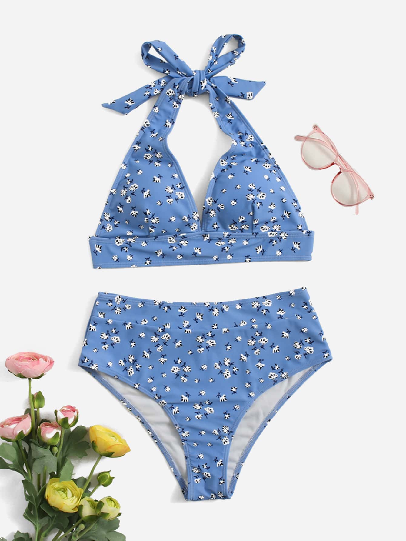 Set bikini estivo con stampa floreale Halter