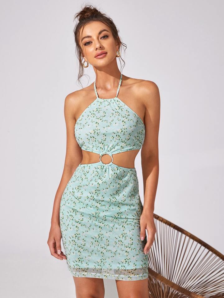 Abito halter con cut out con margherita