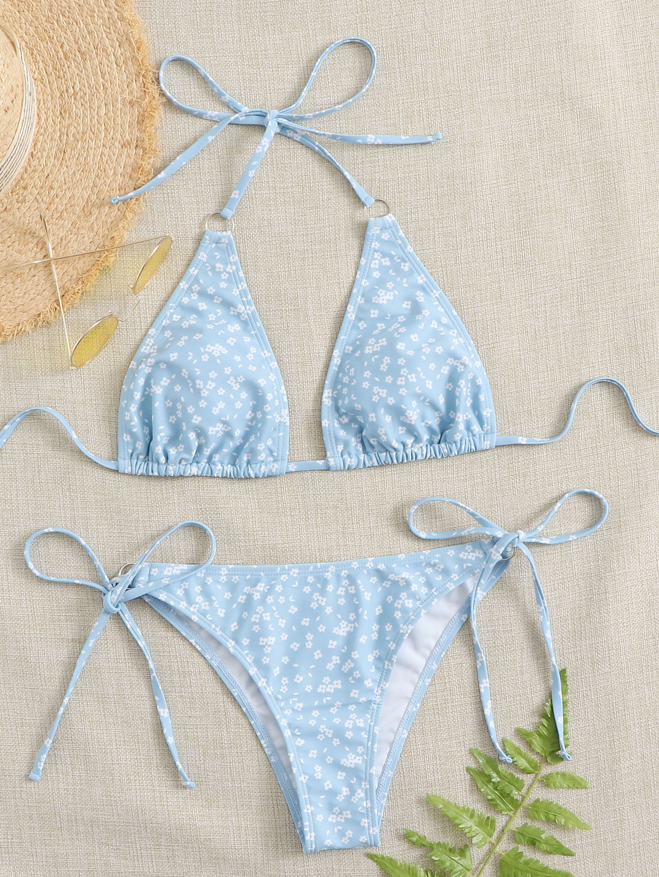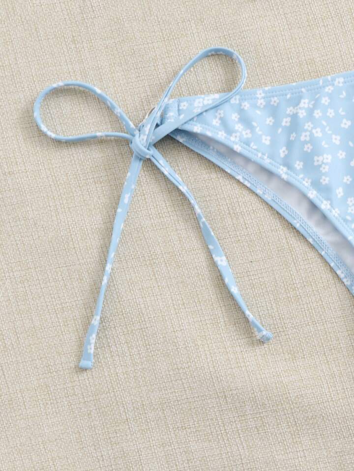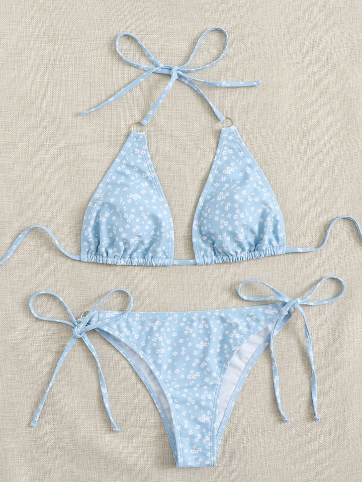 Set Bikini Ditsy Floreale Con Lacci Laterali A Triangolo Da Spiaggia Estiva