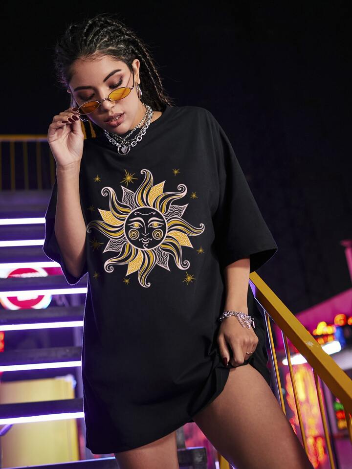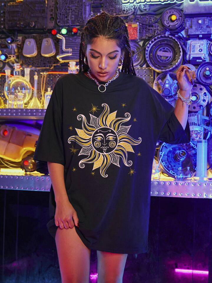 Maglietta oversized con spalle cadenti con stampa grafica