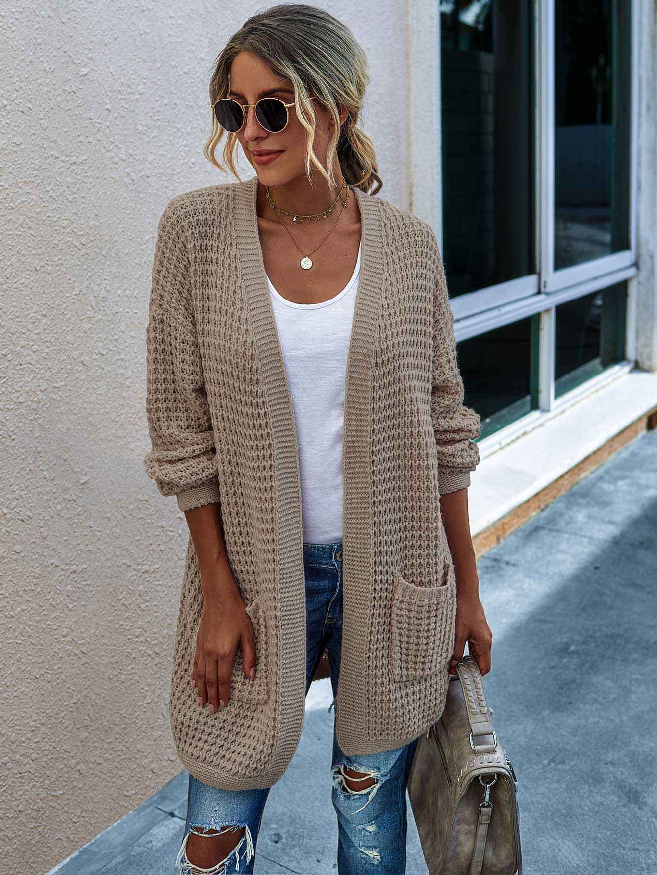 Cardigan con spalle cadenti e tasca doppia