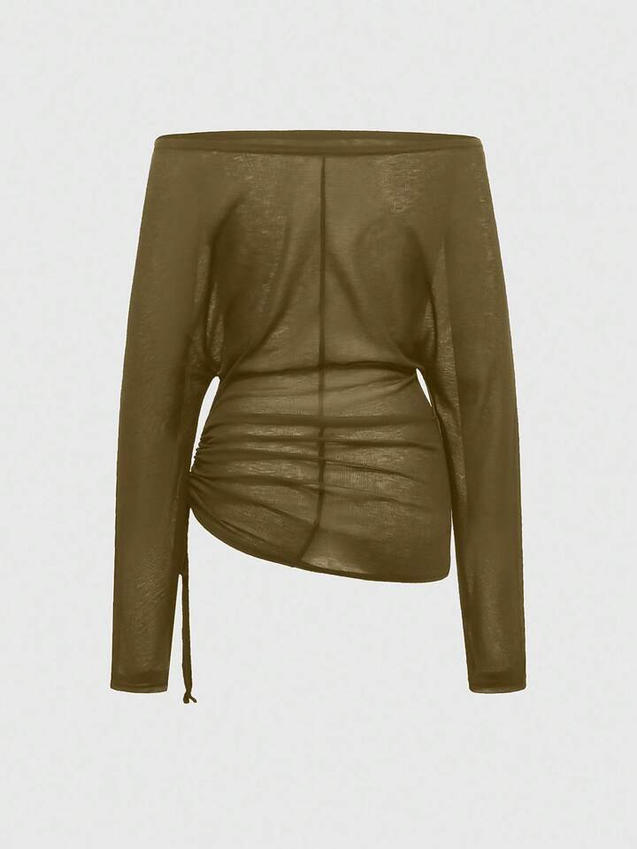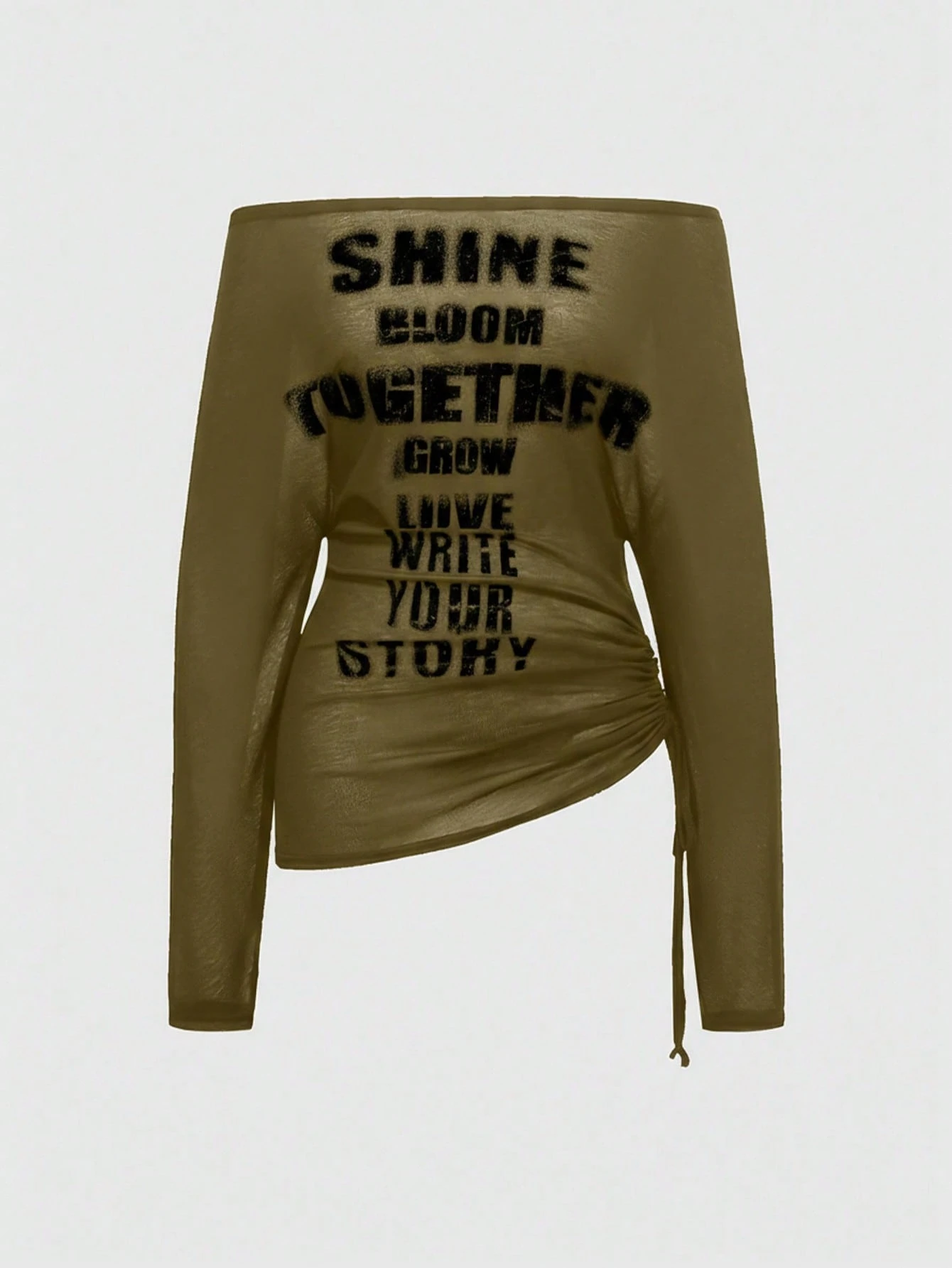 EDITION Maglietta a maniche lunghe con stampa romantica punk a croce e lettera, scollo a spalla, per donne