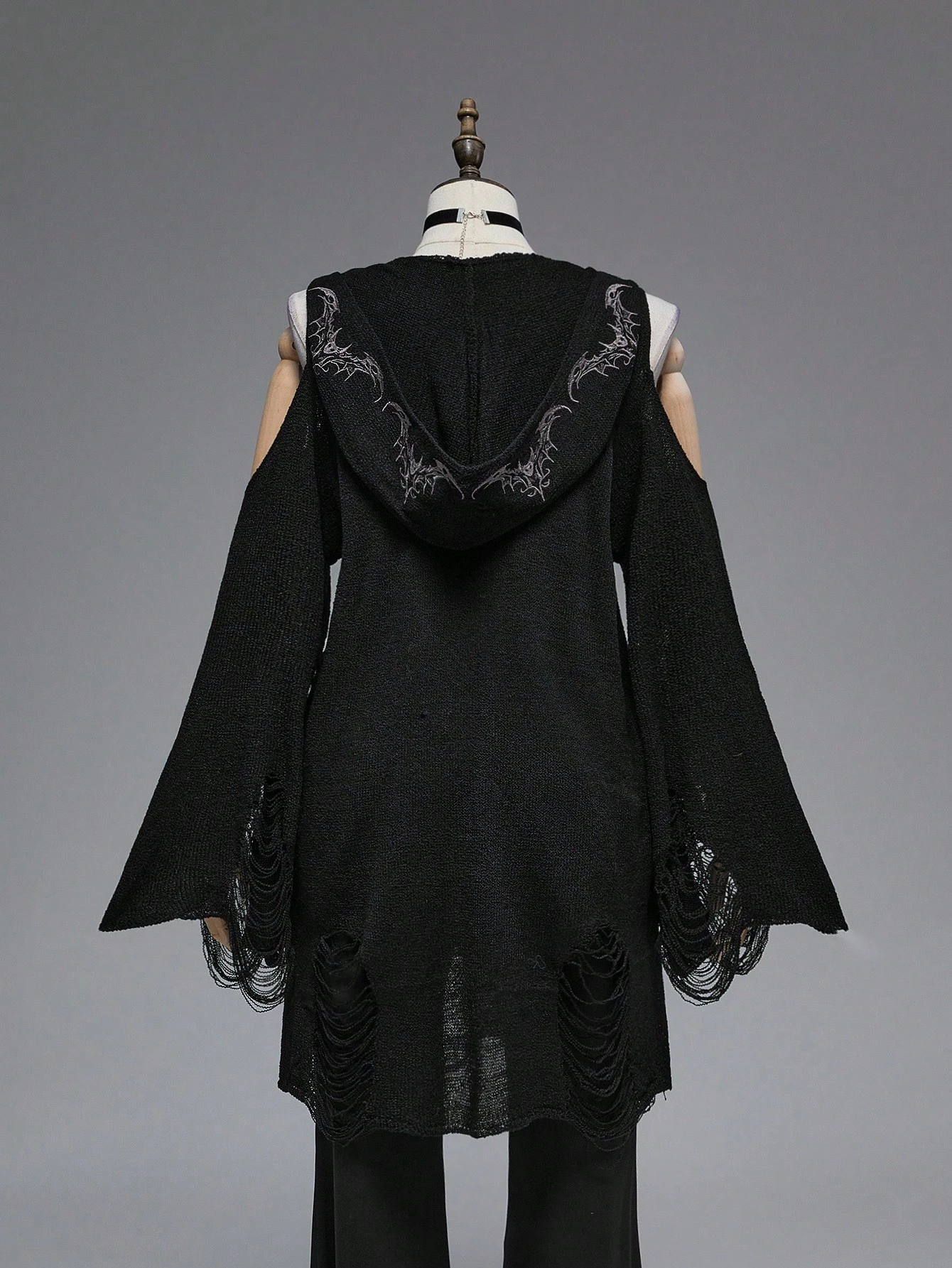 EDITION Felpa con cappuccio oversize gotica con ricamo a pipistrello strappato