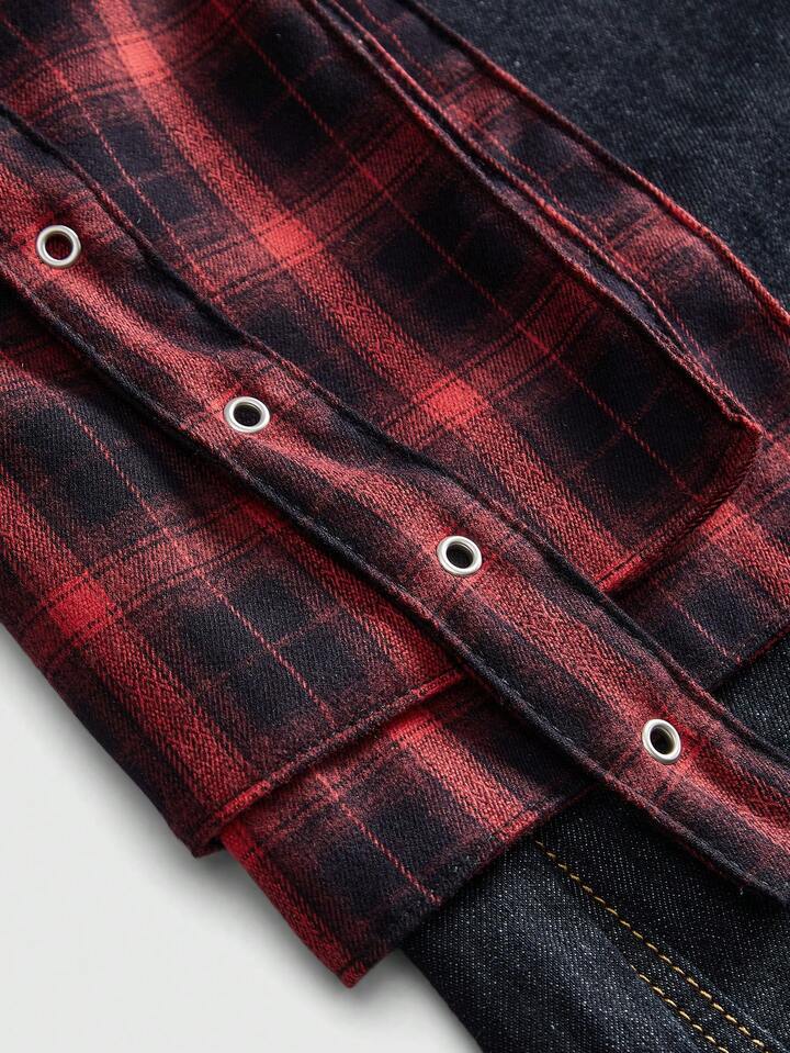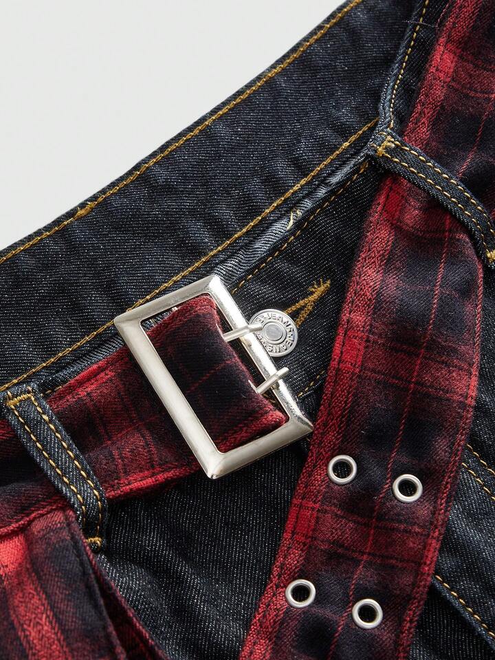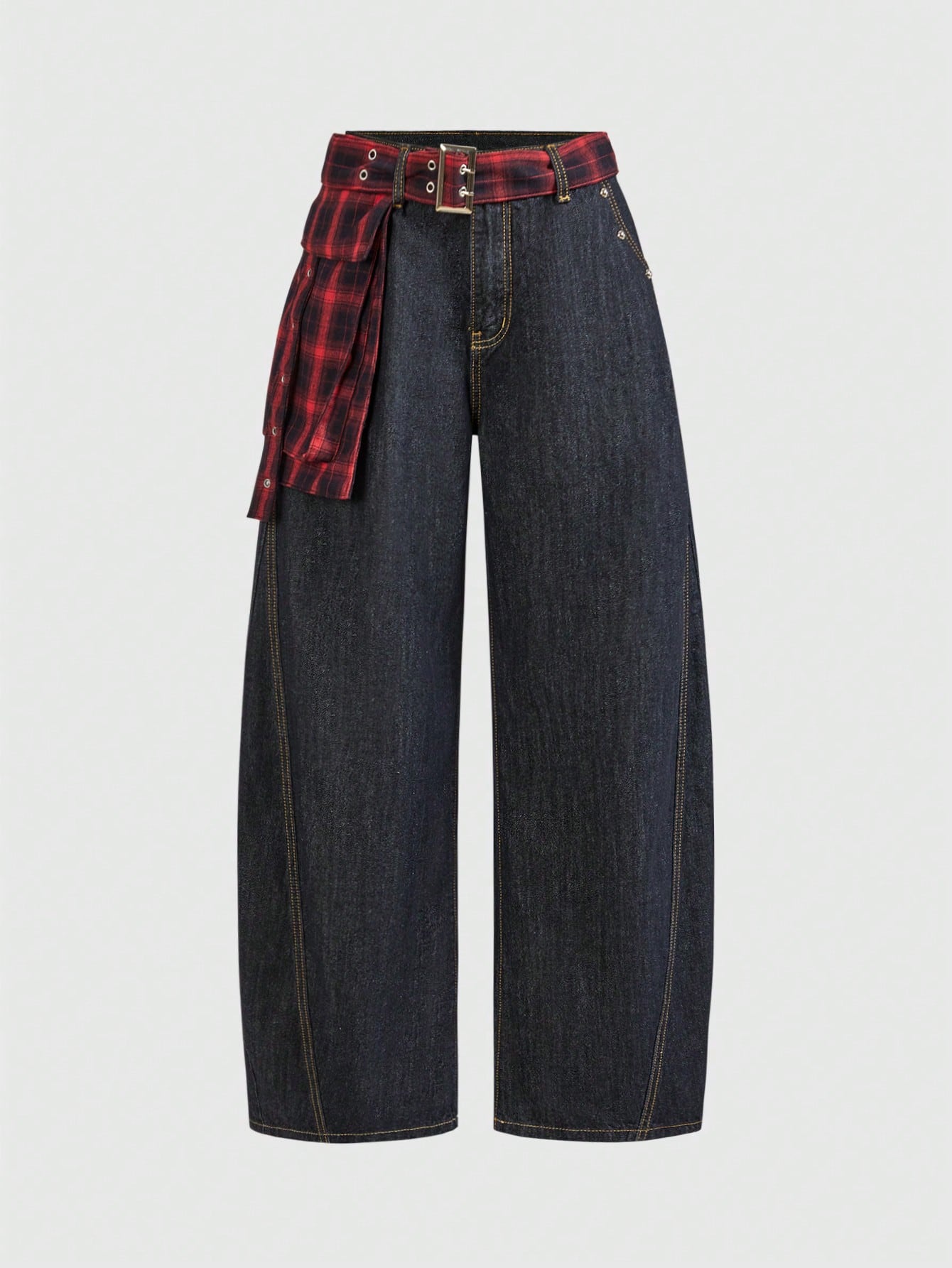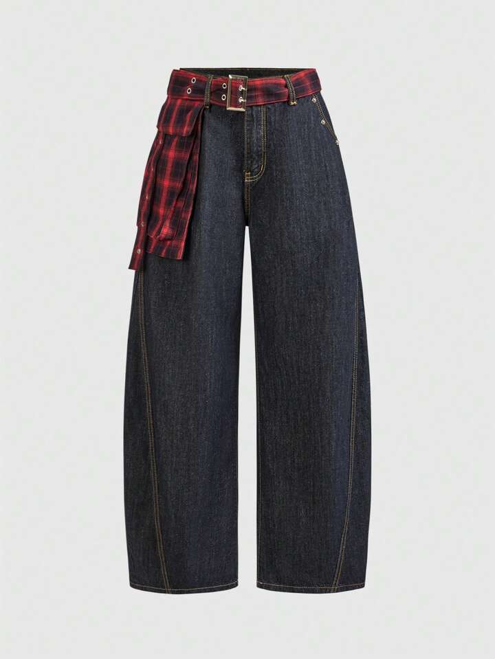 EDITION Jeans a zampa con gonna a strati in stile retrò americano a quadri Y2K