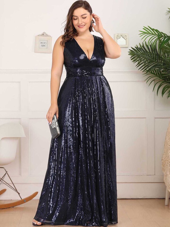 EVERPRETTY Abito prom con collo profondo con paillettes