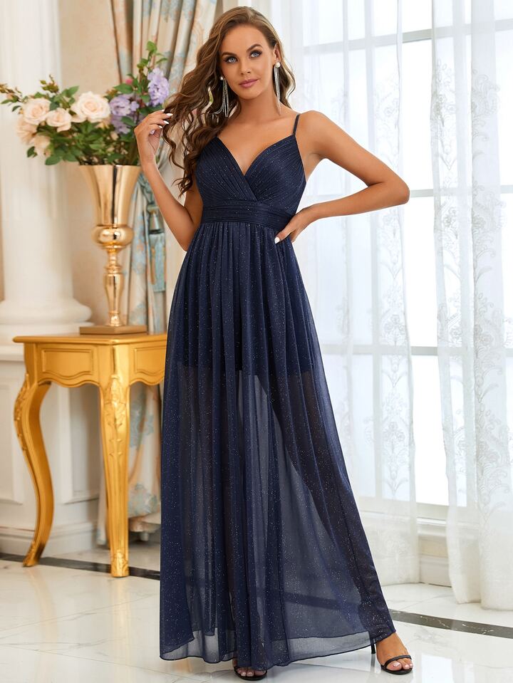 EVERPRETTY Abito da damigella d'onore a fessura alta brillante
