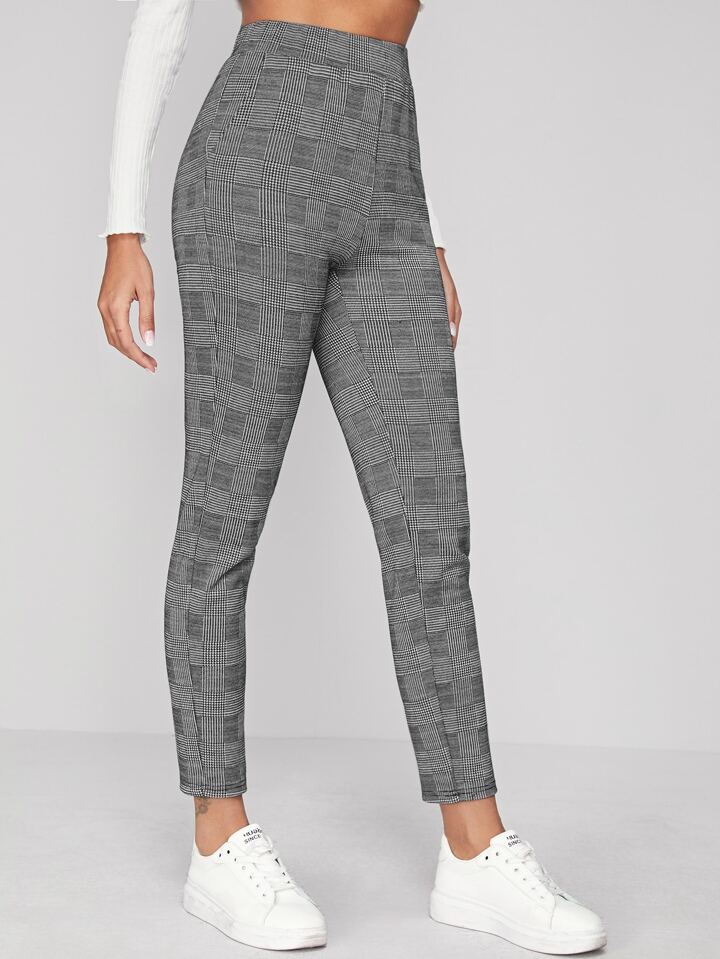 Pantaloni con vita elastica tasca inclinata a quadri abbigliamento da lavoro