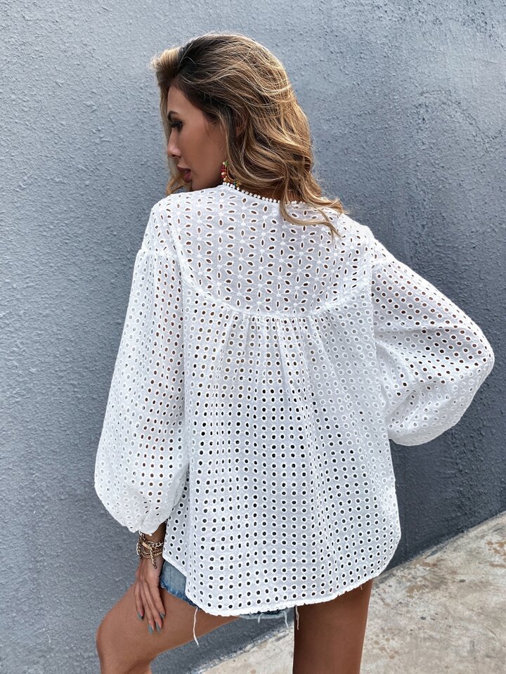 Camicie Ricamo ad occhielli Colore unico Bohemien