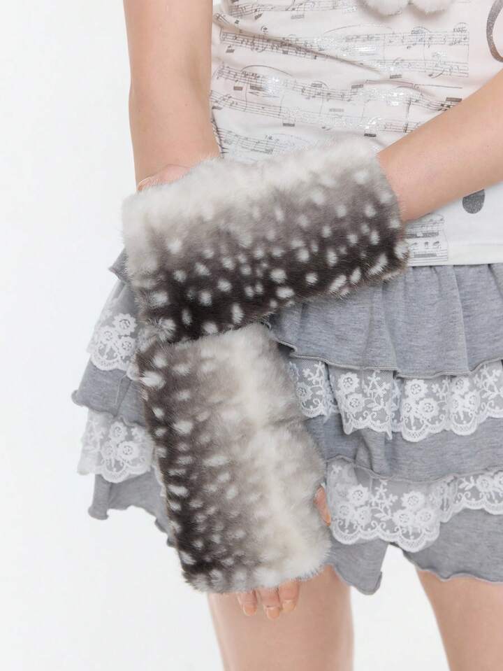 Fairycore 1 Coppia di Guanti senza dita con stampa retrò Y2K a tema cervo e motivo animale, stile minimalista alla moda, adatti per uso quotidiano, feste, raduni, autunno/inverno, Ognissanti, Natale