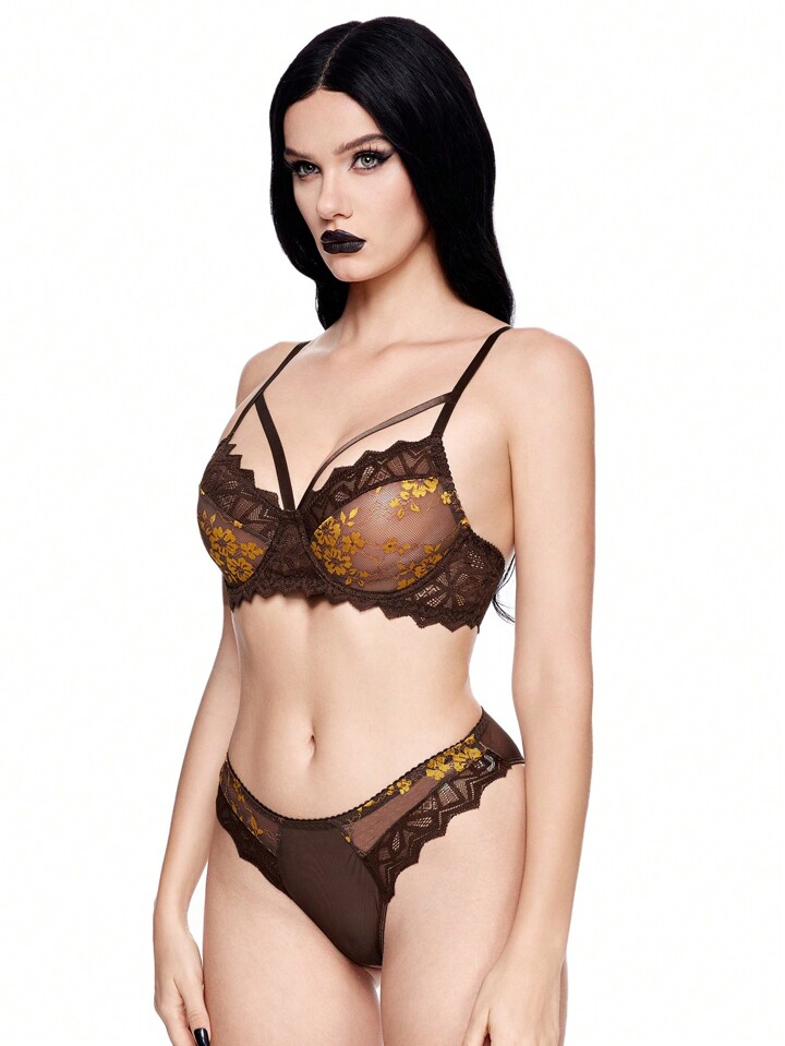 Fairycore 1 set Romantico e sexy reggiseno e slip in pizzo con la coppa imbottita, per l'autunno