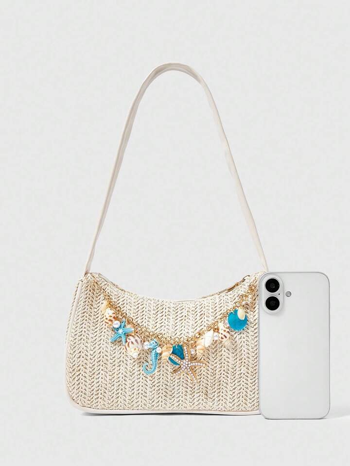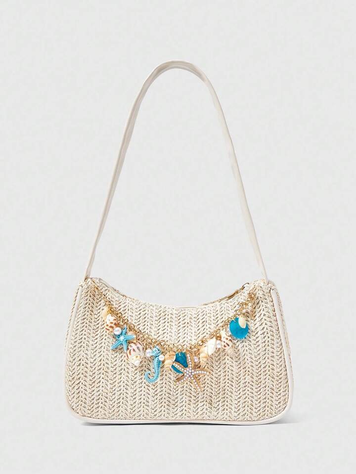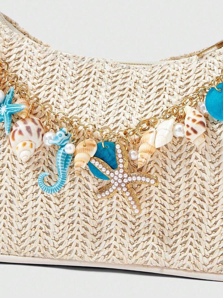 Fairycore 1 Set Borsa da spiaggia intrecciata e accessori, borsa da donna stile resort da spiaggia personalizzata alla moda (include 1 borsa e 1 set di accessori)