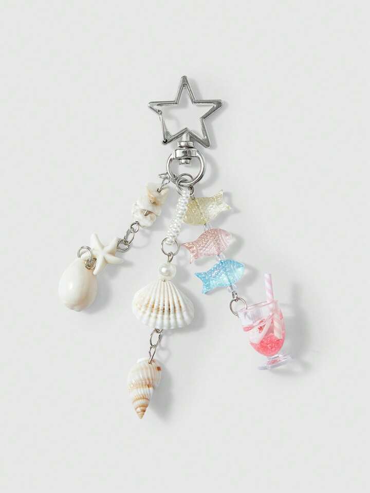 Fairycore 1 pezzo Portachiavi da spiaggia in stile bohémien con ciondolo a forma di pesce tropicale e conchiglia